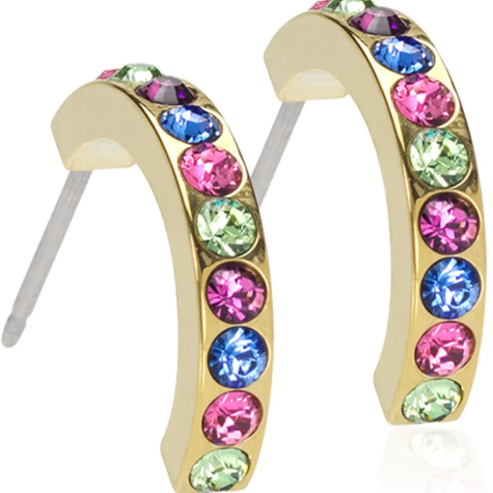 Örhängen tillverkad i den hudvänliga metallen golden titanium med kristaller på i färgkombinationen Fantasy.