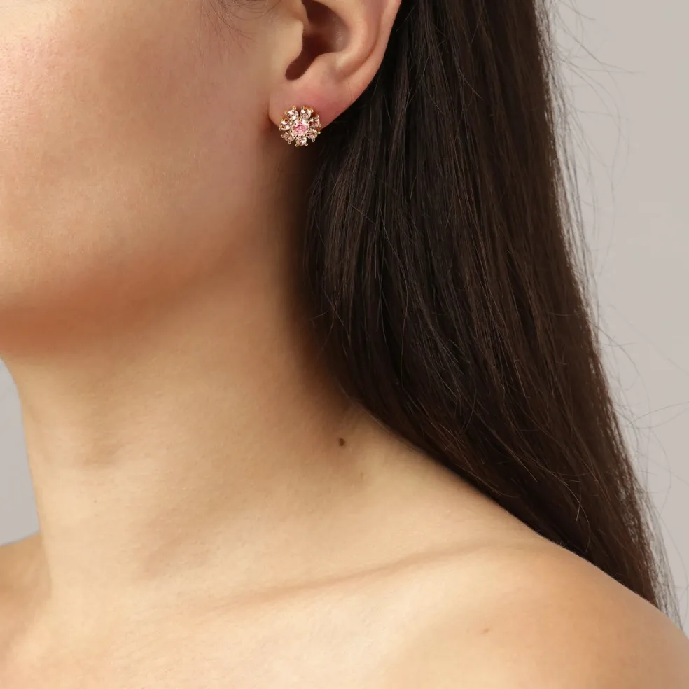 Örhänget Carnea från Dyrberg/Kern är en dröm för den som älskar eleganta och romantiska smycken. Dessa studsörhängen har en vacker design som påminner om en blomma med kristaller i mjuka nyanser av ljusrosa och peach. Färgkombinationen skapar en varm och feminin känsla som passar perfekt till såväl vardag som festliga tillfällen.