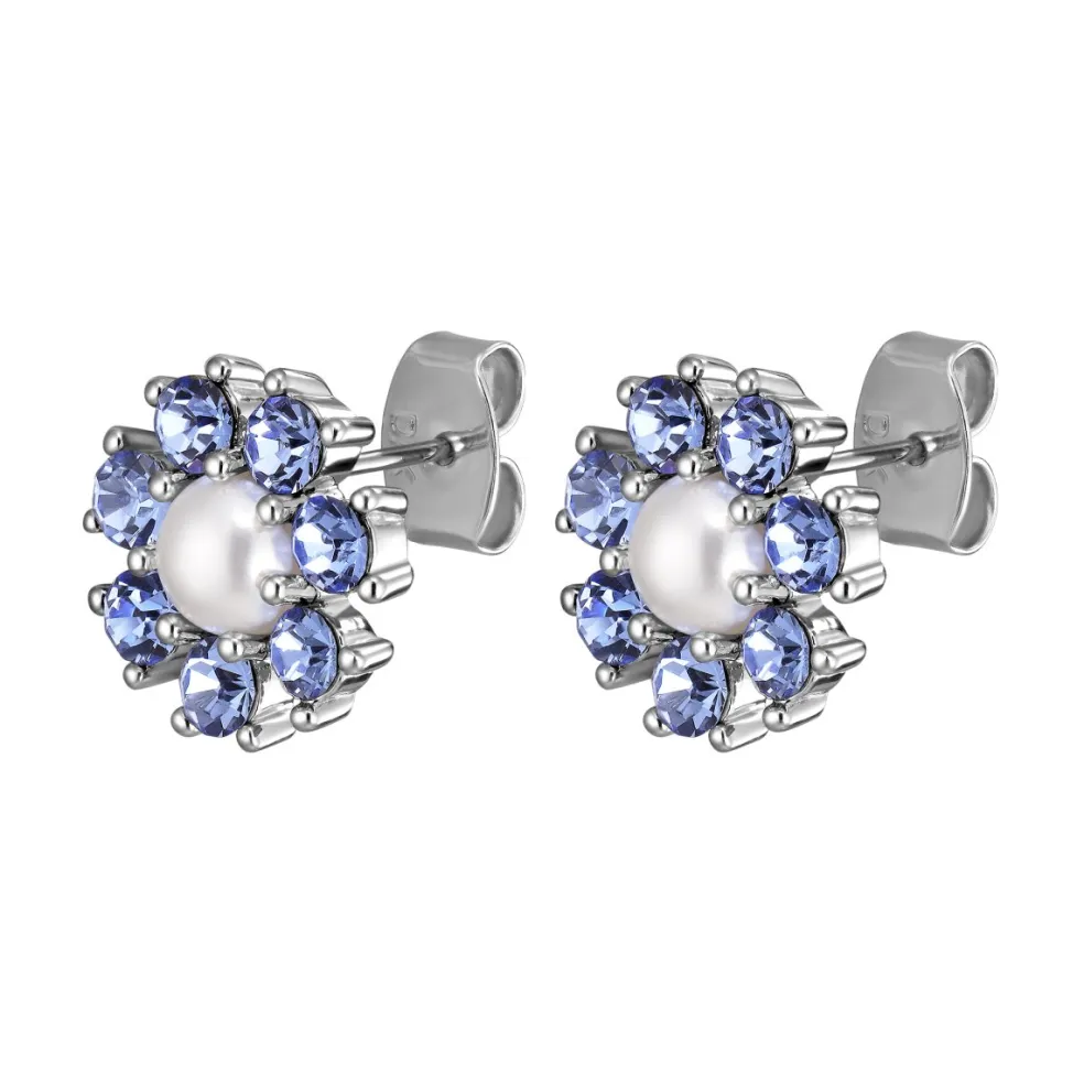 Med sin storlek på ca 1,2 cm är Carnea-örhängena precis lagom i storlek. Den blomliknande formen för tankarna till naturens skönhet, och den tidlösa kombinationen av blått och vitt gör örhängena mångsidiga.