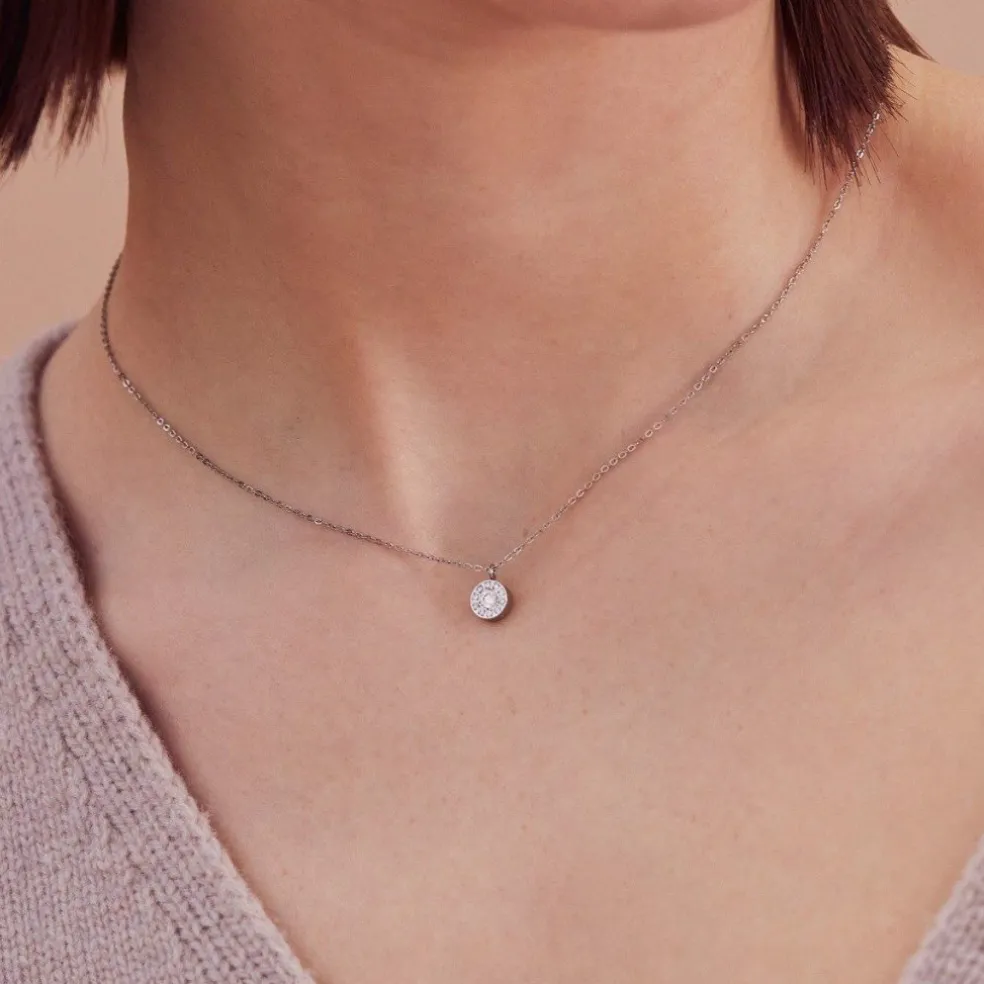Glittrande Thassos kommer här i en minimodell. Thassos halsband i blankt guld har en större sten omringad av 10 stycken små. Vackert och nätt halsband som du gärna kombinerar med örhängen i samma serie.