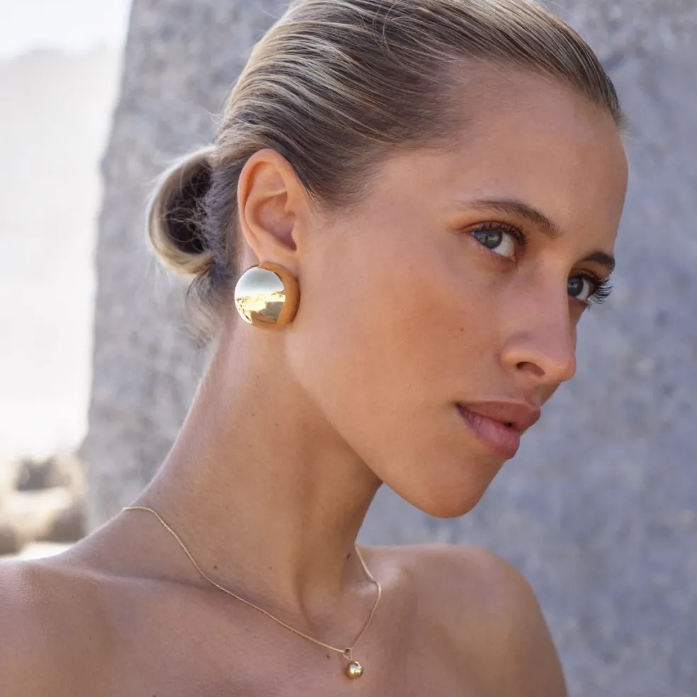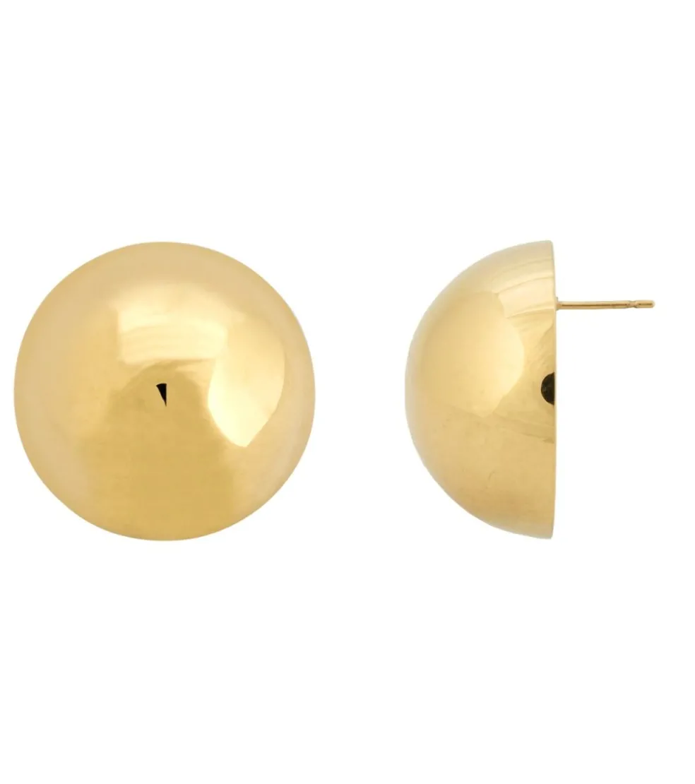 Trendiga Bead maxi studs med sin halva boll är statementörhängena som tar för sig alla dagar i veckan. Bead studs maxi kommer med större backparts så örhänget sitter snyggt, ses här i blank 14K guldplätering.