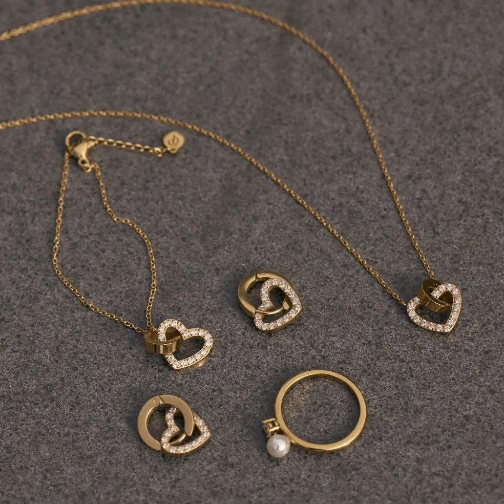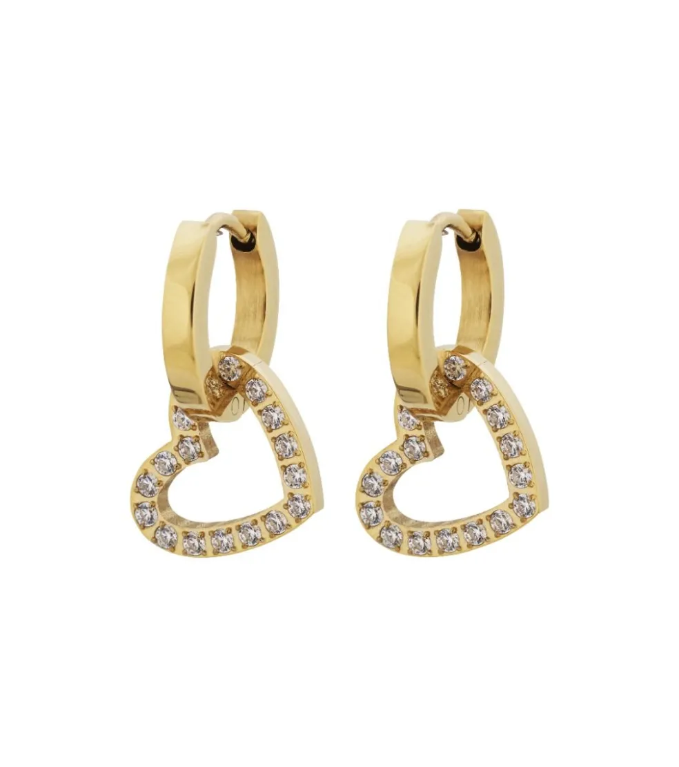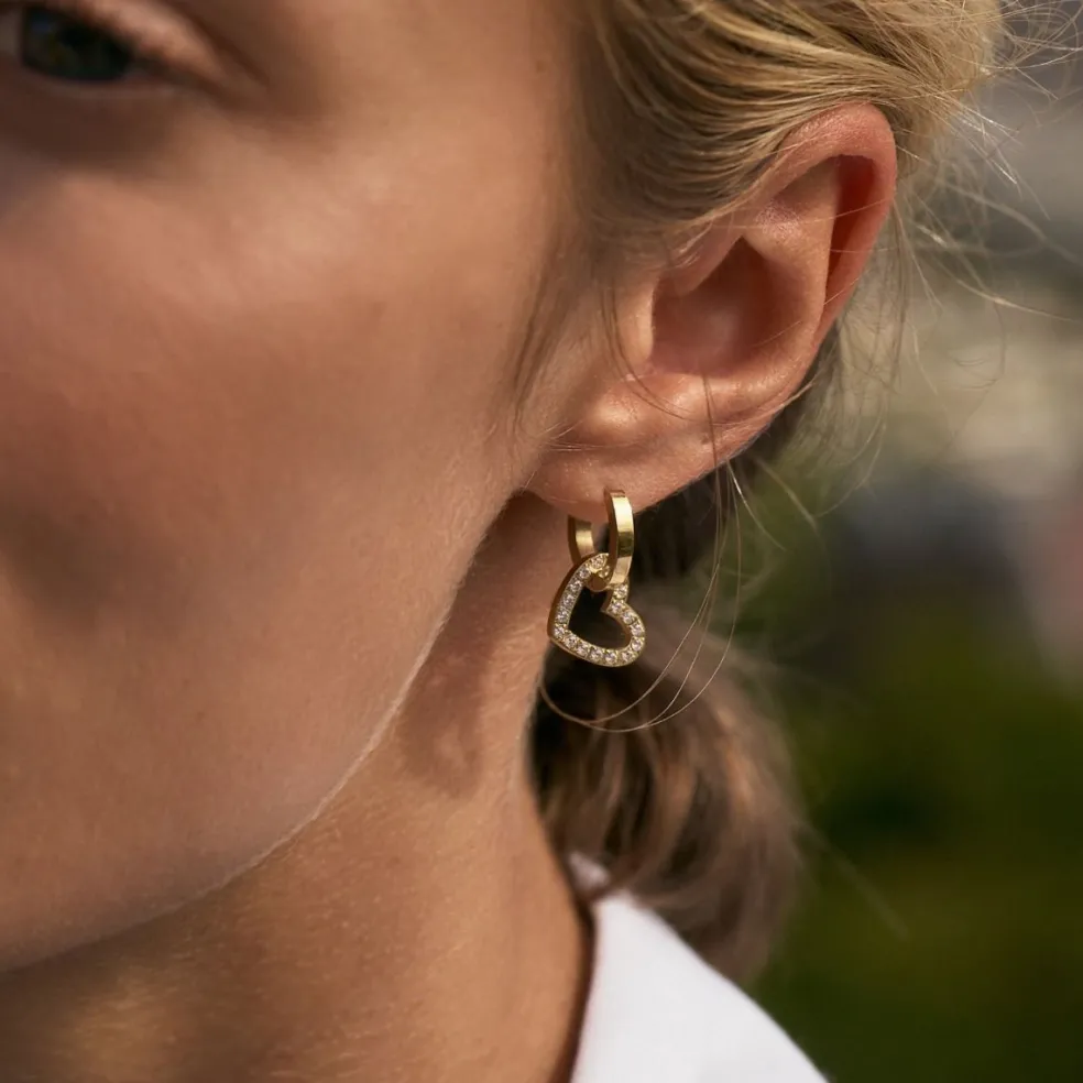 Eternal Heart är en klassisk Edbladserie som med sitt fina kristallklädda hjärta kopplat med en rring. I örhängena hänger hjärtat i en hoop, fina örhängen du gärna bär alla dagar i veckan. Eternal Heart ses här i blank 14K guldplätering.