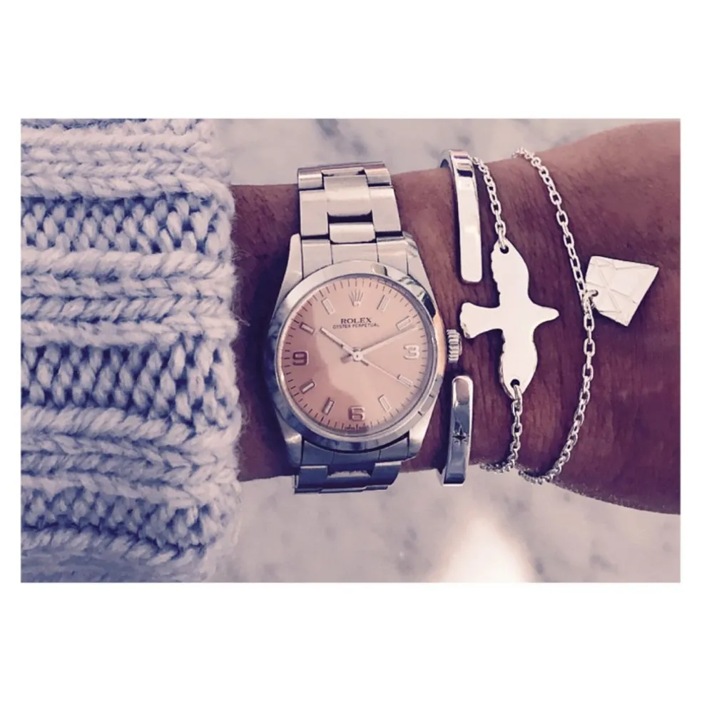 Emma Israelssons smycken är eleganta och mycket tänkvärda. Duvan återkommer som designinslag på halsband, örhängen och givetvis också på armband. Den lilla duvan i silver har formats med vacker design. Du kan bära armbandet som det enda du har på din handled. Men det passar också mycket bra ihop med andra smycken av silver. Duvan kan skymta under en längre tröjärm eller synas ordentligt då du bär kortärmat. En fin present till dig själv eller till någon som behöver lite mer inspiration i vardagen.