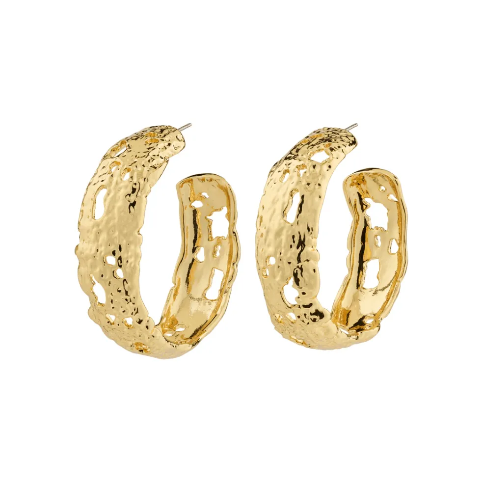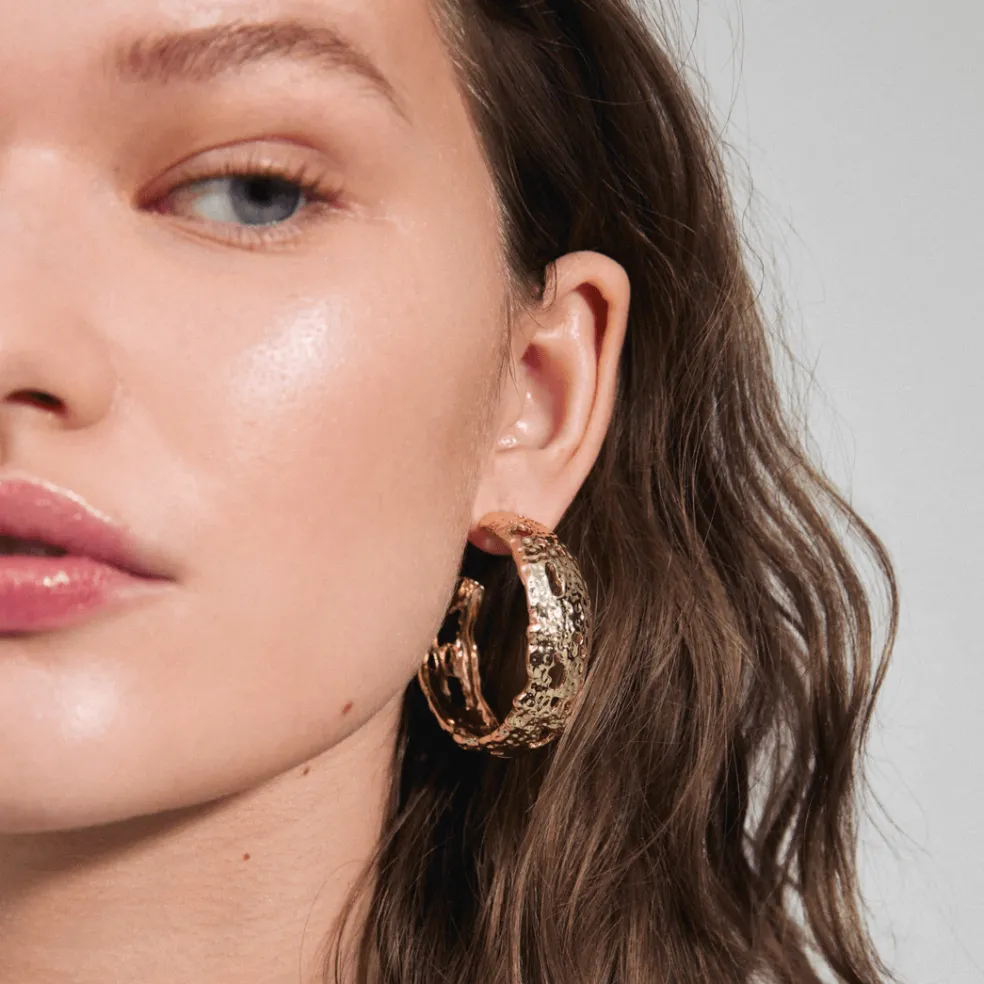 Med sin imponerande storlek och rustika design väcker detta par örhängen ett ha begär. Den perforerade ytan och den råa, handgjorda känslan ger örhängena en naturlig och organisk vibe, som påminner om skönheten i det ofullkomliga och okonstlade.