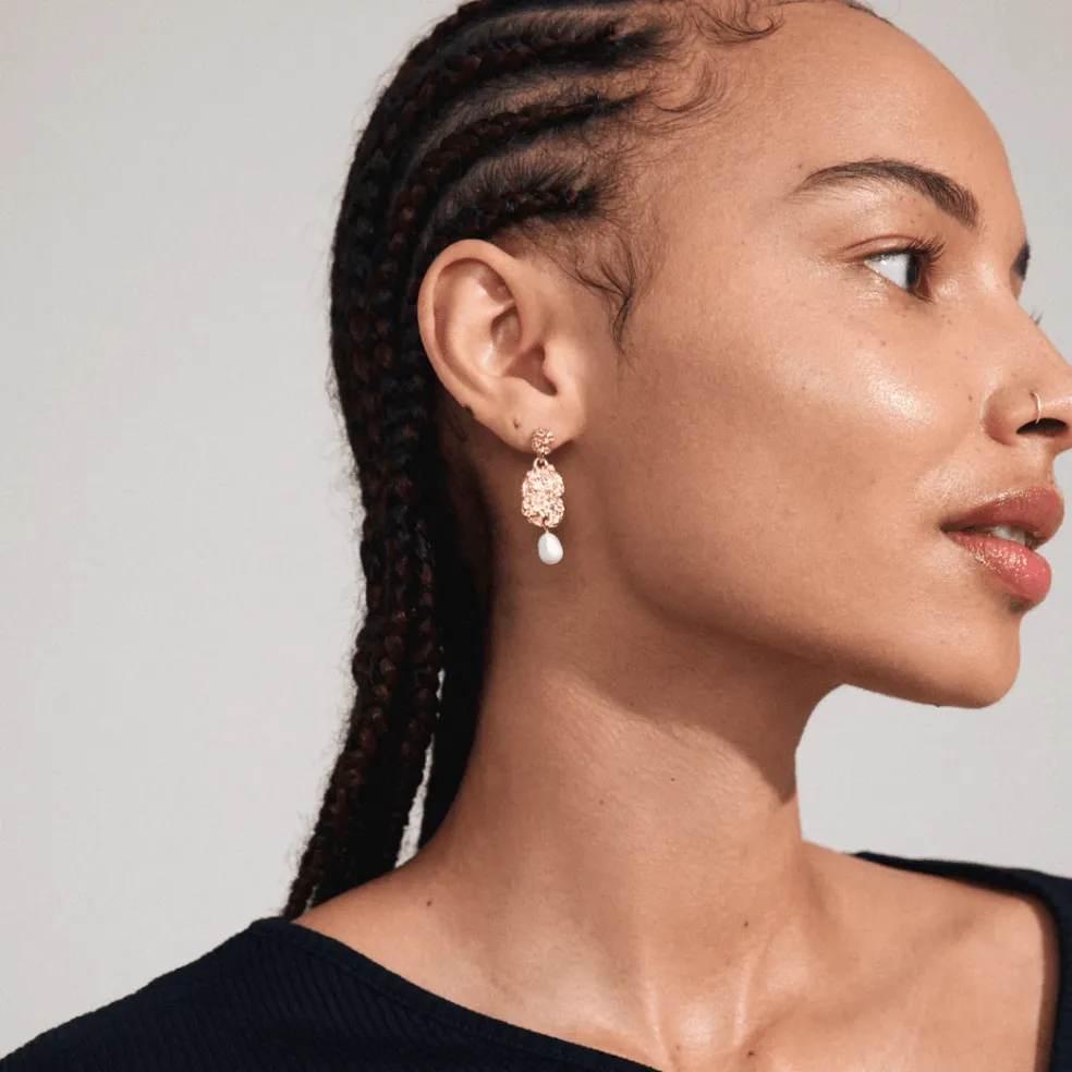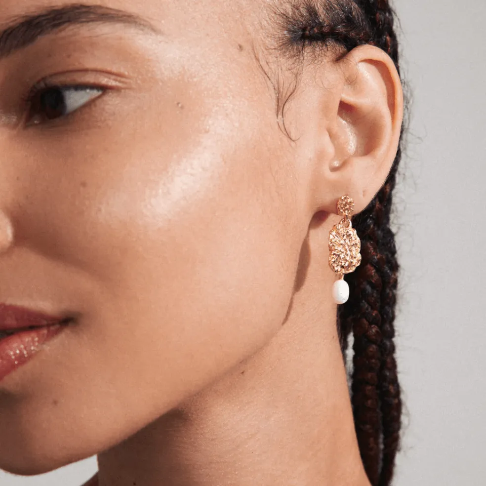 Guldpläterade mynt med en unik ojämn struktur som är dekorerad med äkta sötvattenspärlor. Örhängena som ger dig en stilfull stil. Med de snygga TRUE örhängena får du säsongens nyckelplagg som framhäver din individualitet och känsla för unikhet.