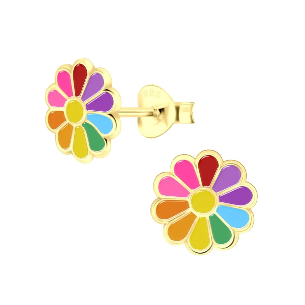 Härliga blommörhängen tillverkade i 18 karats guldpläterat silver med färgad emalj.