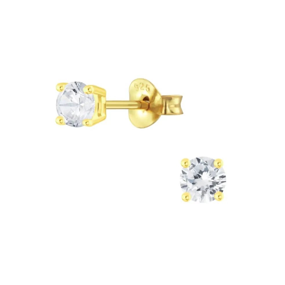 Här ser modellen i guldpläterat silver med en klar kristall på ifattad i fyra klor.