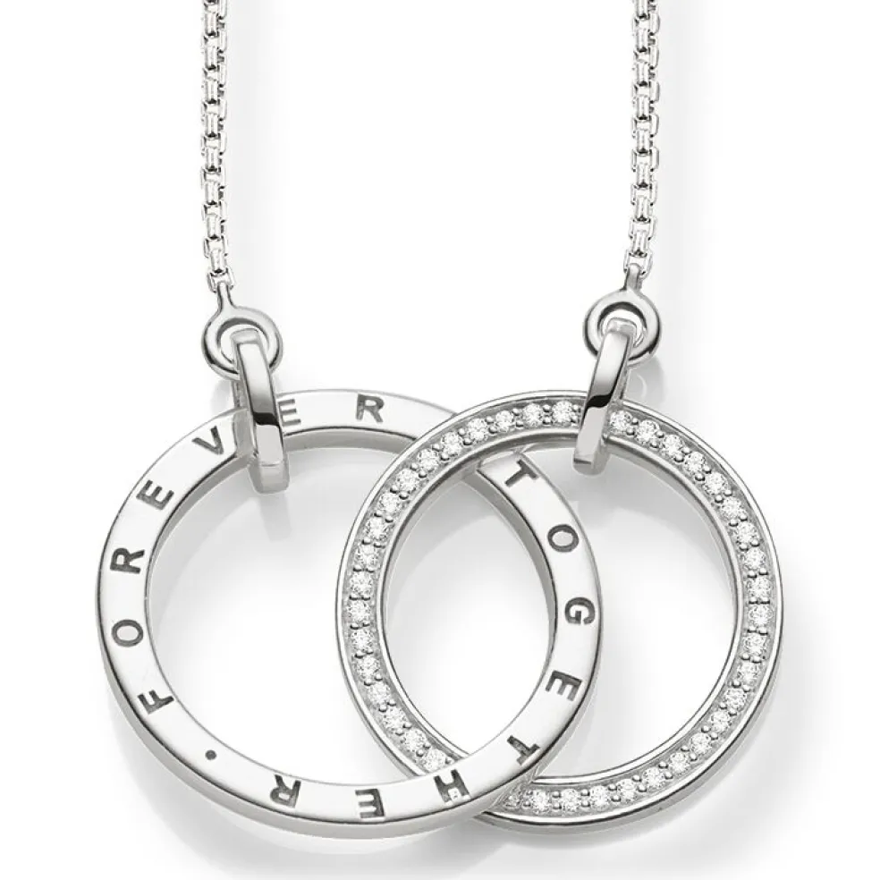 För alltid förenade – De hopflätade ringarna på kedjan i 925 sterlingsilver med zirkonia pavé står för den oskiljaktiga samhörigheten mellan två som älskar varandra. Gravyren ”Forever Together/Together Forever” förstärker dess symbolkraft.