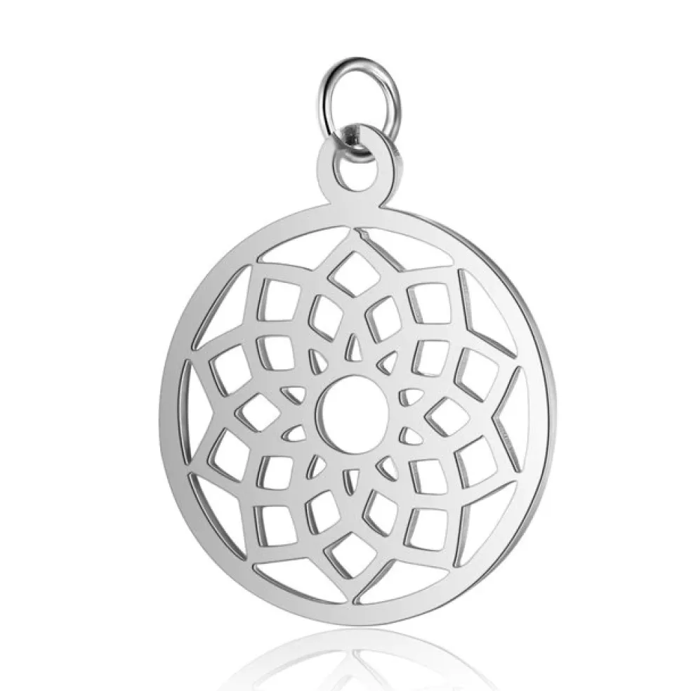 Berlock i stål med Chakratecknet Sahasrara / Kronchakrat på, berlocken kommer från varumärket Anna K Jewelry och deras serie Yoga.