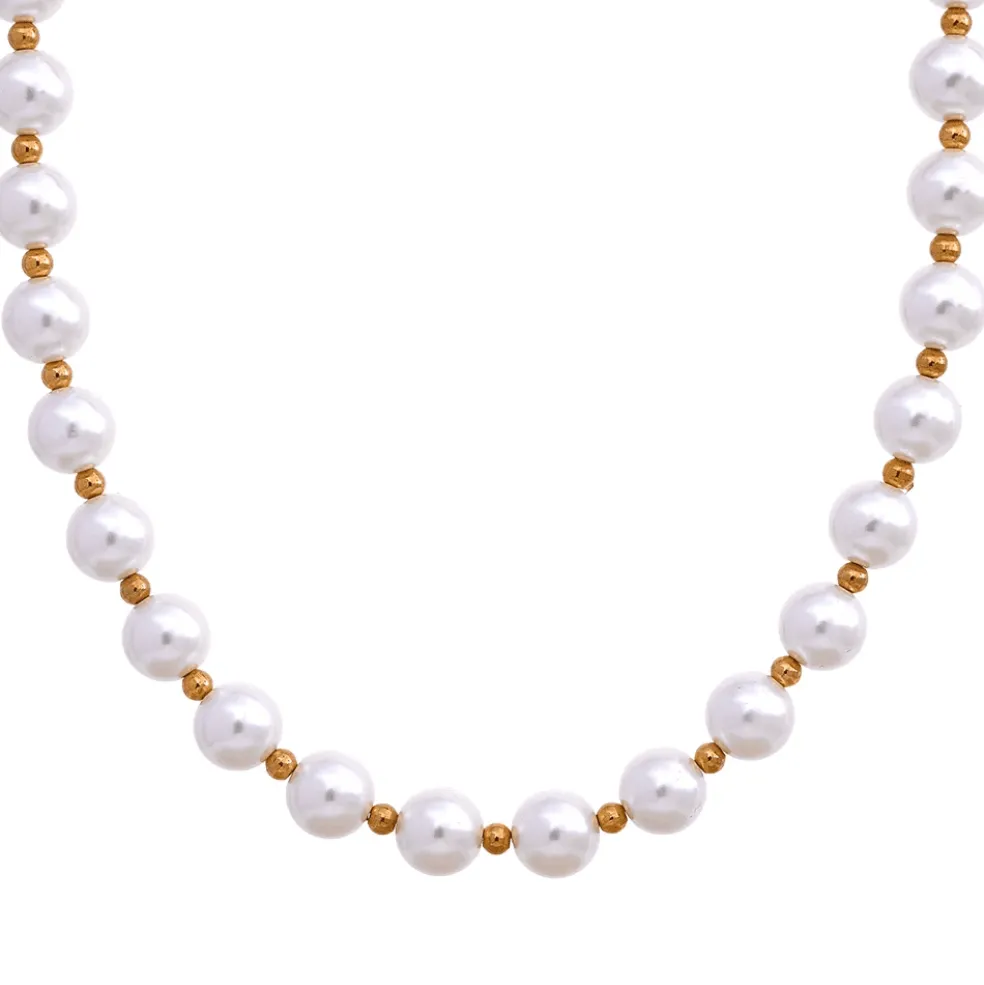 Detta halsband är ett uttryck för självförtroende och elegans. Den guldpläterade metallen ger en varm och lyxig känsla, vilket gör att pärlorna verkligen kommer till liv. Oavsett om du bär det till en formell tillställning eller för att förhöja din vardagliga look, kommer detta halsband att göra ett bestående intryck.