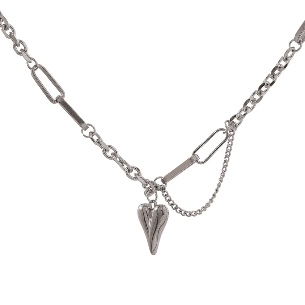 Den mixade kejdan ger en modern touch medan det "bulliga" hjärtat lägger till en touch av lekfullhet och charm. Halsbandet är justerbart i längd från 42 till 47cm vilket gör det mångsidigt och passande för olika stil och preferenser.