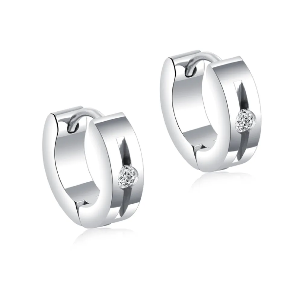 Ringörhängen i stål med en lite cubic zircon på, modellen kommer från varumärket Anna K Jewelry.