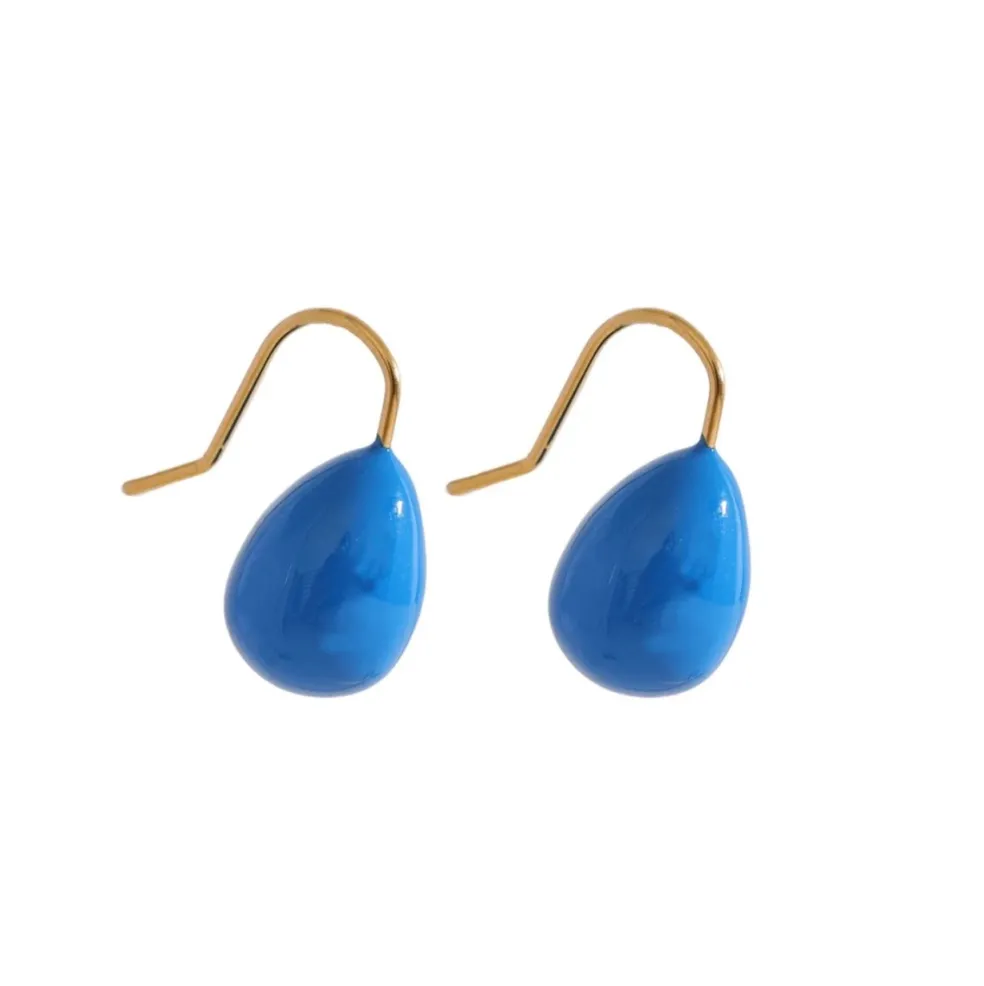 Upptäck den ultimata accessoaren för sommaren 2024 – dessa förtjusande örhängen i en elegant doppformad design! Tillverkade av högkvalitativt guldpläterat stål och framhävda av en fantastisk blå färg, är dessa örhängen enastående i sin skönhet och stil.