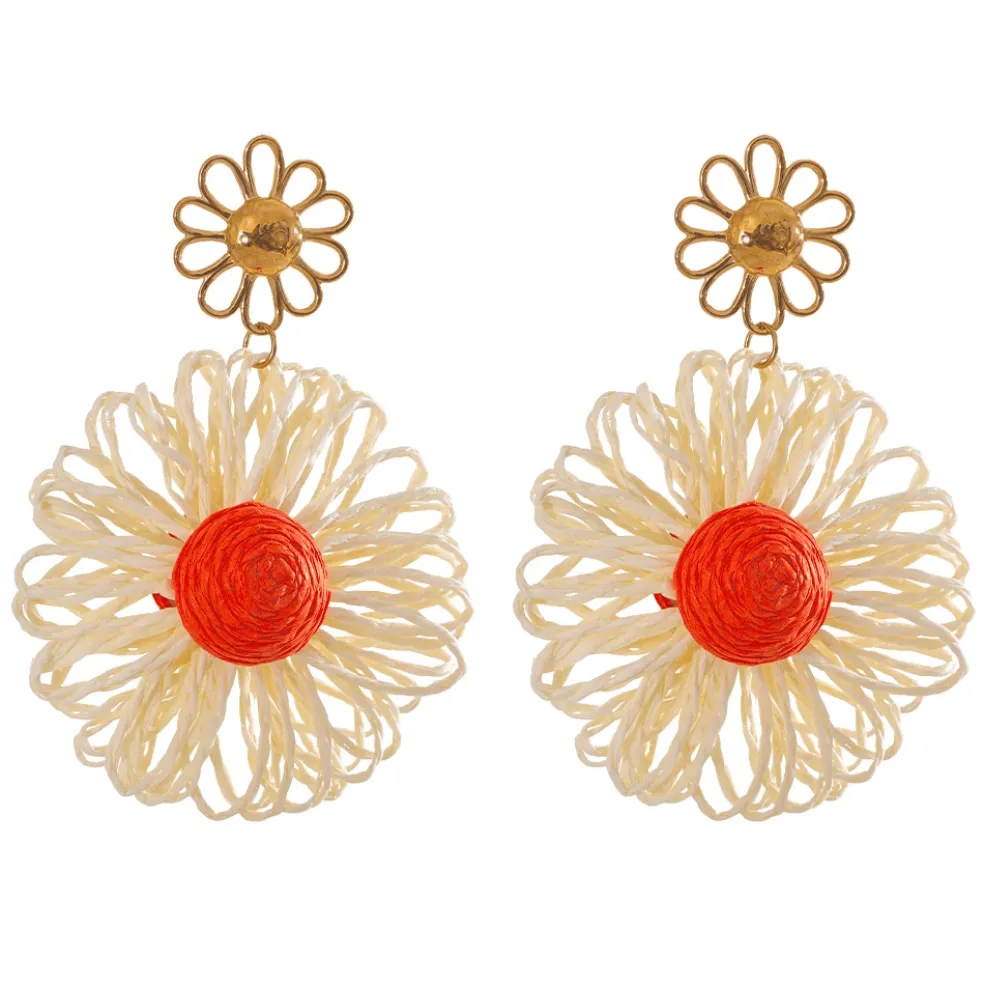 Dessa stora, läckra örhängen är formade som vita blomblad med en livfull orange mitt, som för tankarna till vårens första blommor och sommarens energi. De är verkligen ett statement som sticker ut och ger liv åt vilken outfit som helst – oavsett om det är en enkel sommarklänning eller en klassisk skjorta. Med sin fräscha, färgstarka design kan dessa örhängen snabbt bli din nya favoritaccessoar för säsongen. Så, vågar du låta dessa blommor lysa upp dina dagar?