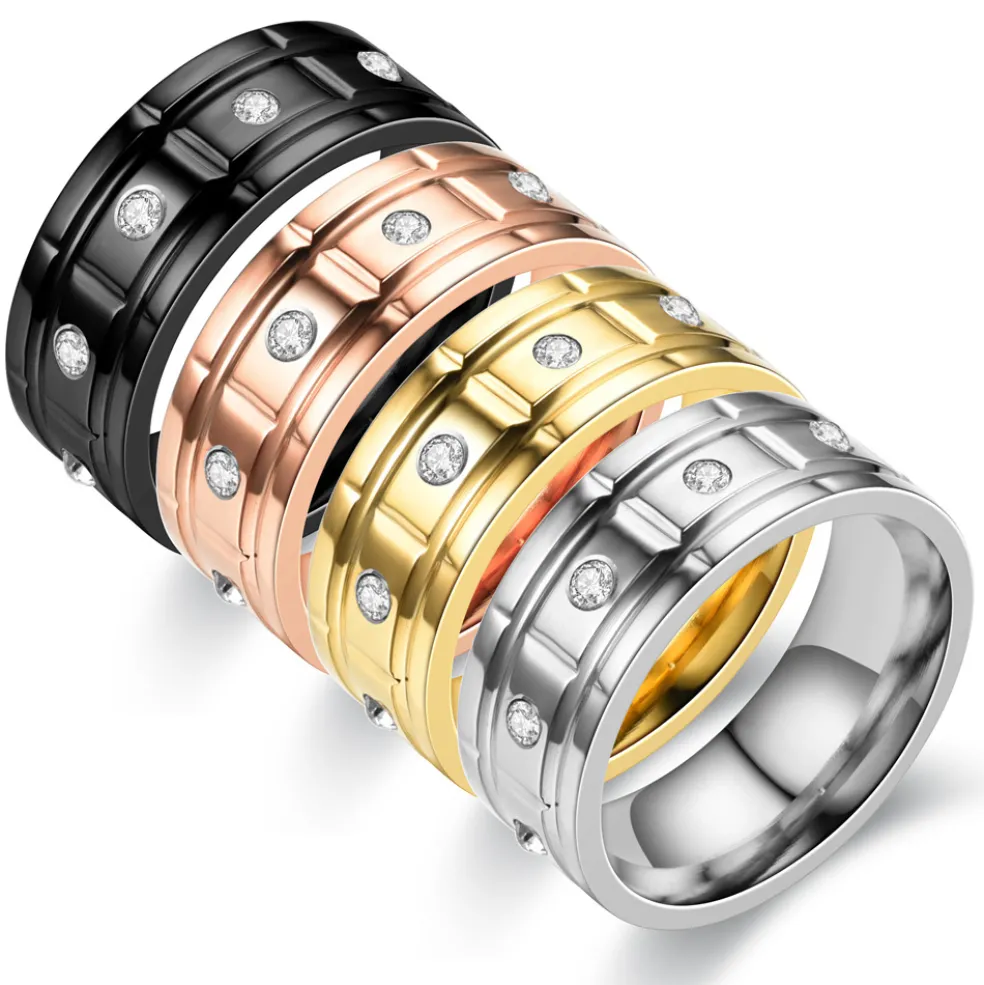 En snygg ring i guldpläterat stål med totalt 10 st små klara kristaller på. Just denna modell finns i fyra olika färger.