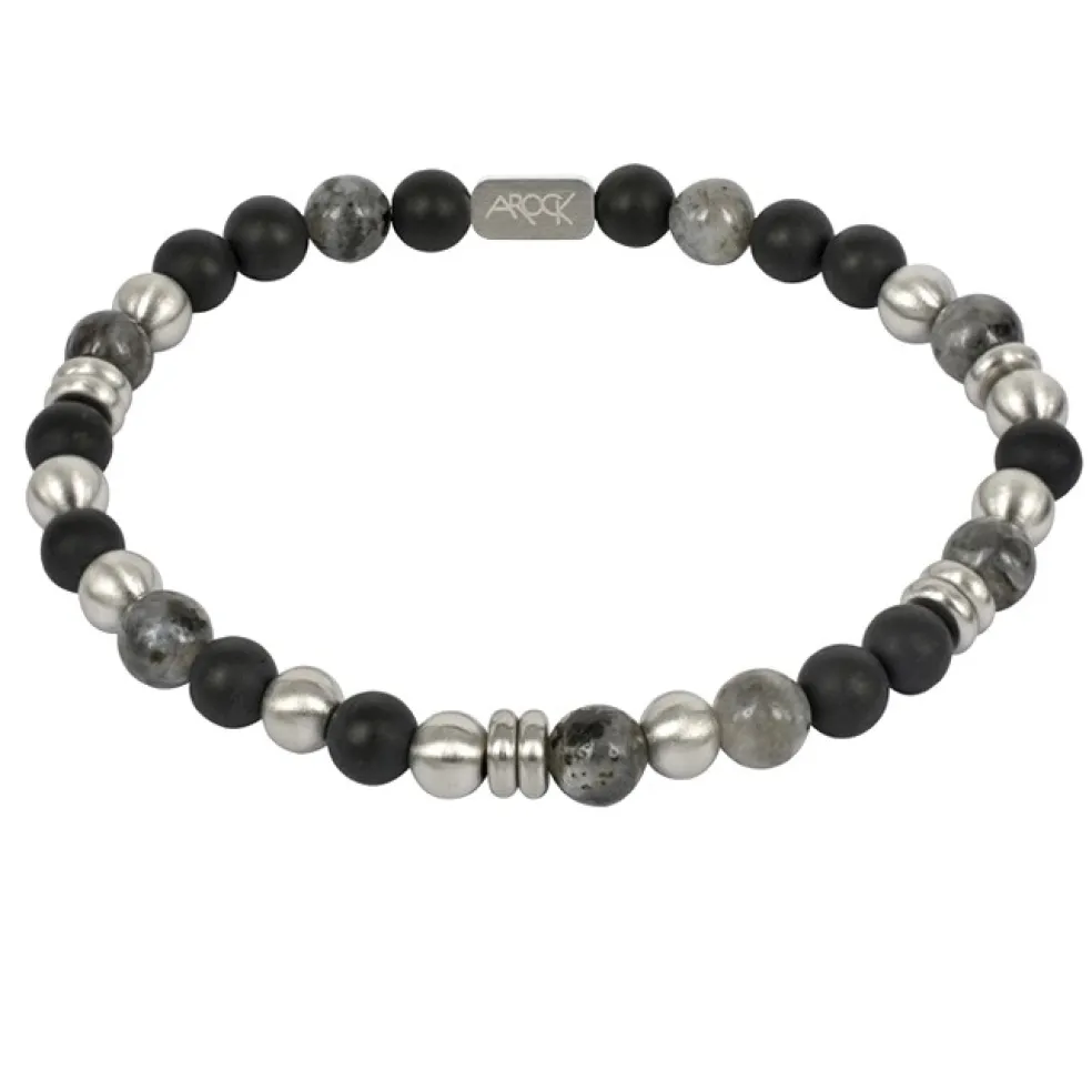 Ett elastiskt kularmband som passar utmärkt att mixa med ett läderarmband för bästa effekt. Modellen heter Eddie och ses här i svart, silver och grått.