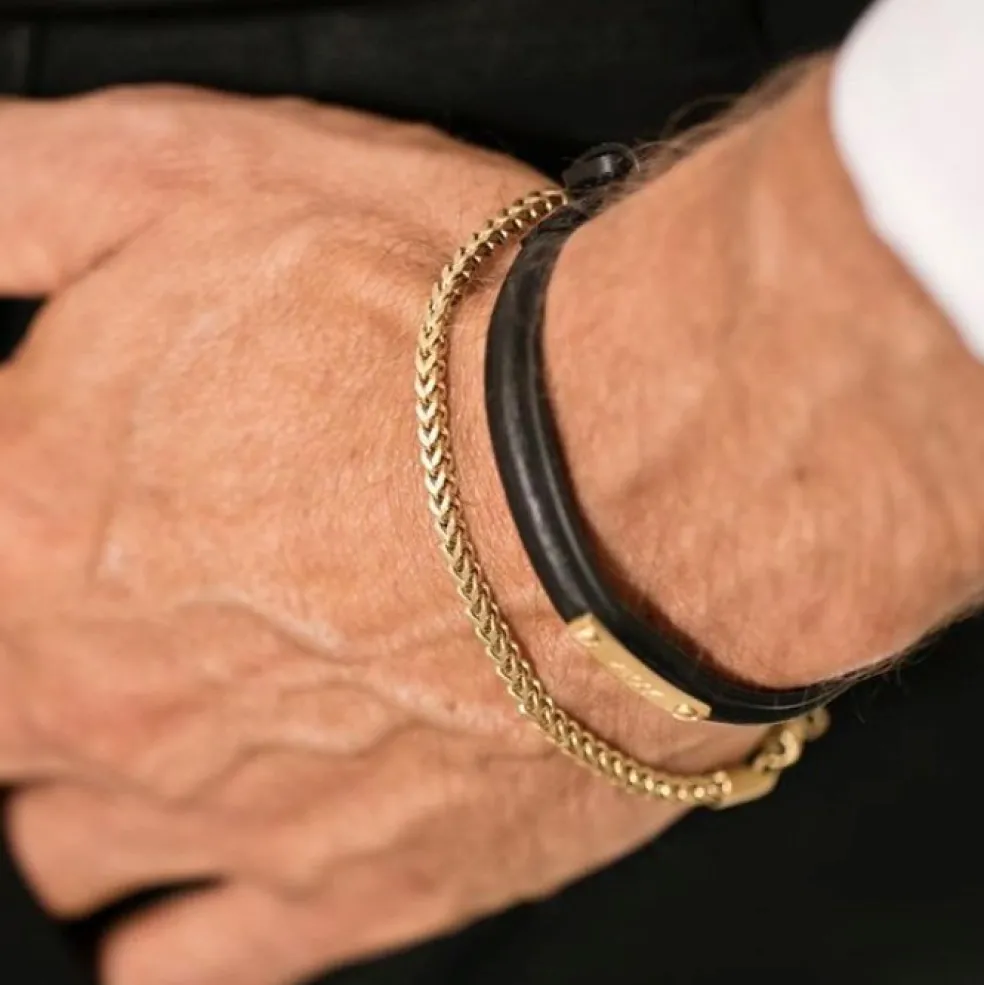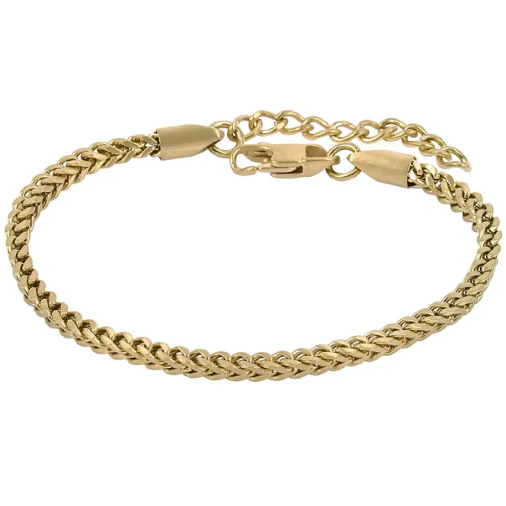 Snyggt fyrkantigt stålarmband med kraftigt lås från Arock, här i guldfärg.