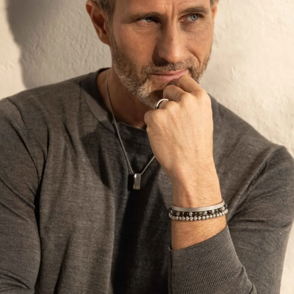 Öppningsbar armring i stål med mechmönster på från varumärket Arock.