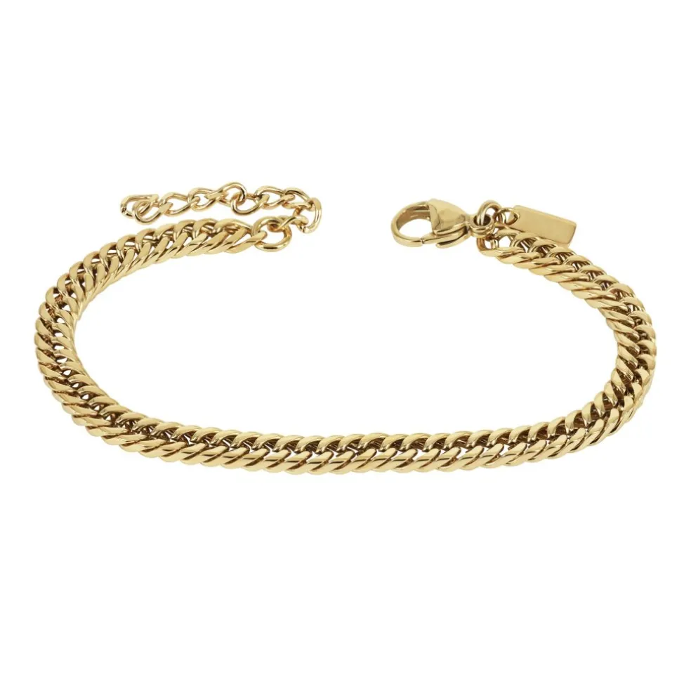 Armband i dubbel pansarlänk, modellen heter Riwer XS och ses här i guldpläterat stål.