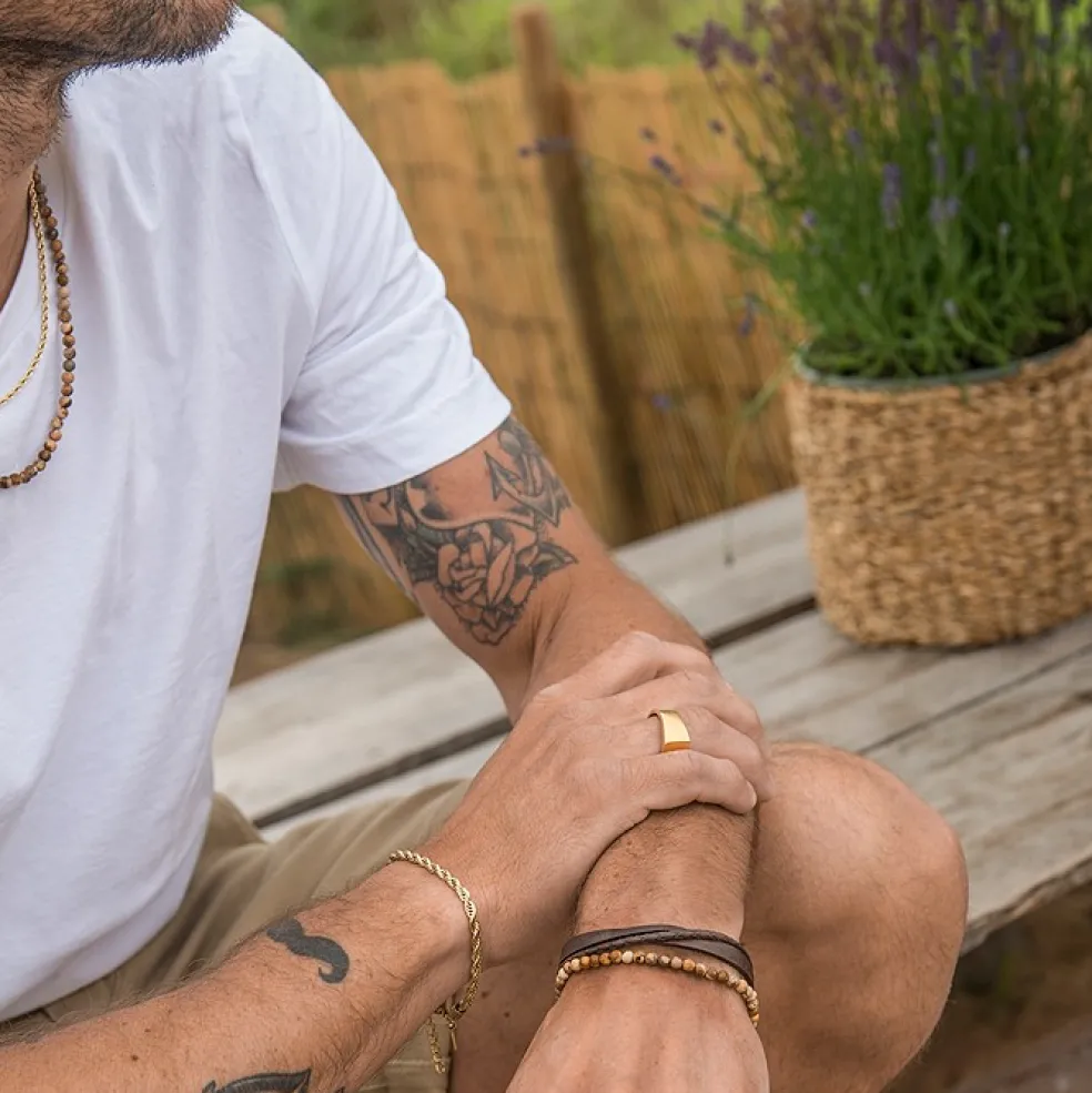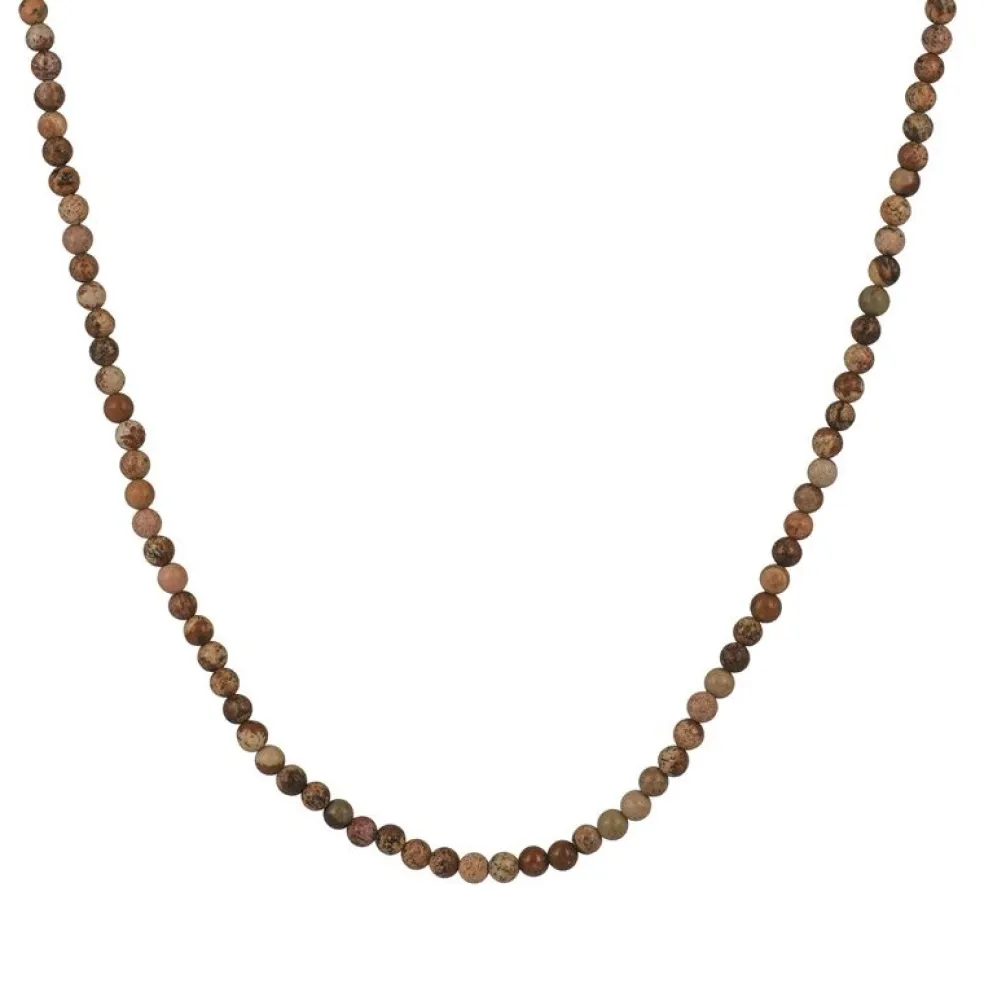 Kulhalsband tillverkat av brunmelerade stenar i bronzit.