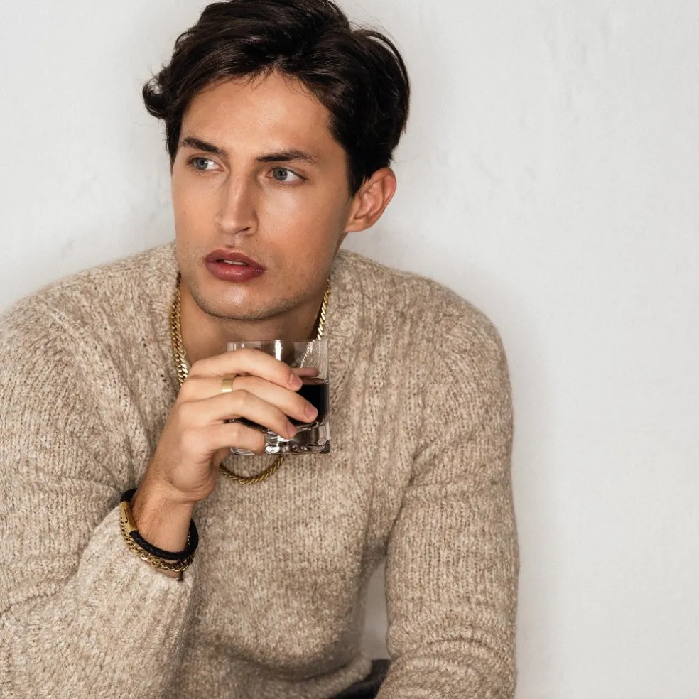 Klassisk guldfärgad pansarlänk i mattborstat rostfritt stål från ARock.