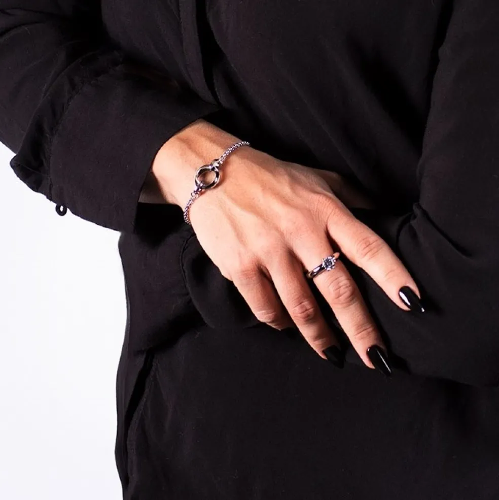 Förhöj din stil med detta eleganta armband från varumärket Astrid & Agnes. Modellen Carolin är en del av en serie av förfinade smycken, och detta armband är inget undantag. Med sina två sammanfogade ringar av rostfritt stål ger det en sofistikerad touch till din look, oavsett tillfälle.