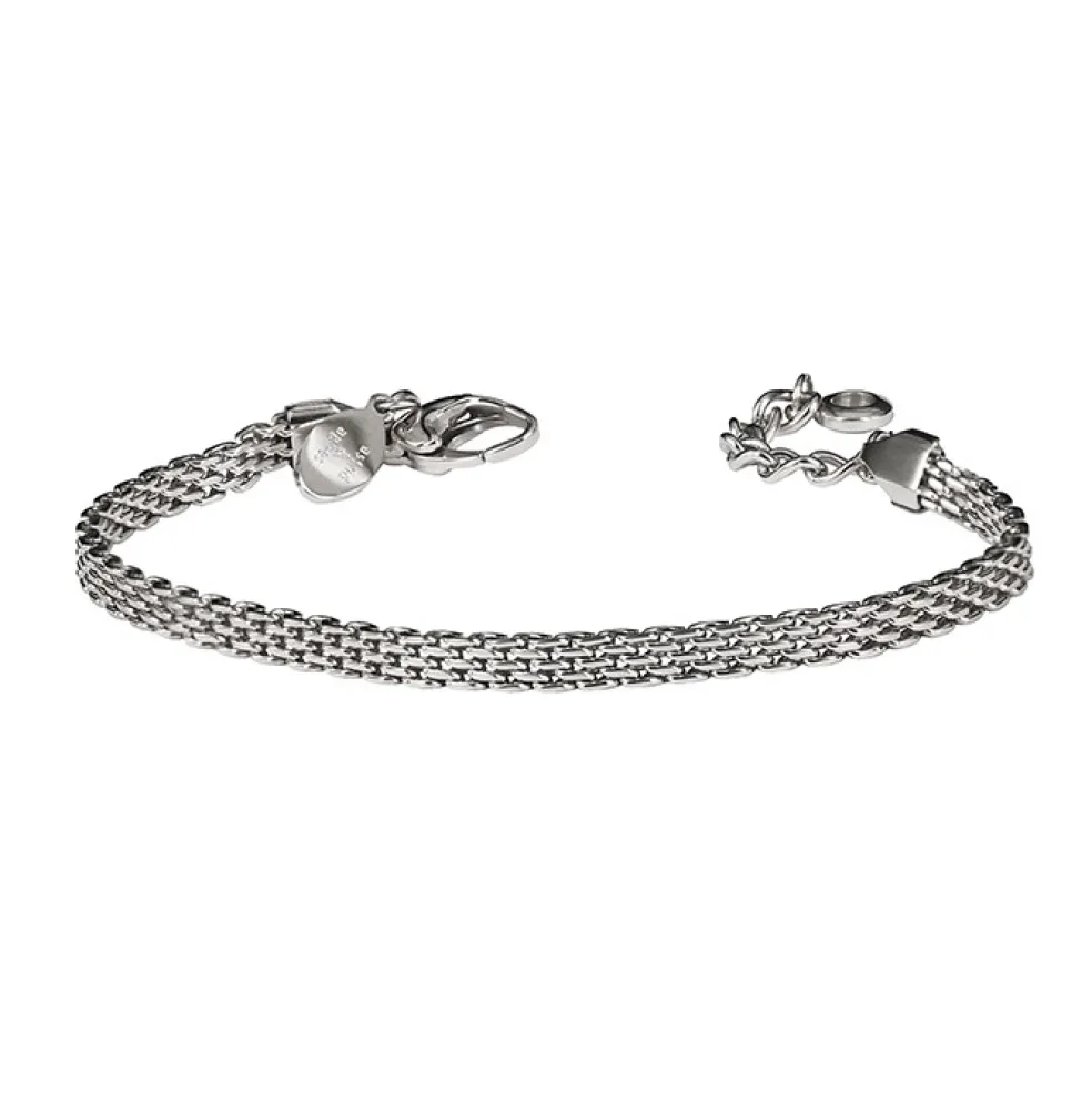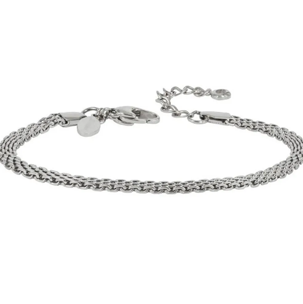 Armband tillverkat av 5mm bred platt länk i blankt stål, modellen heter Chloe och kommer från varumärket Astrid & Agnes.