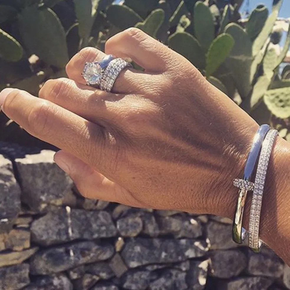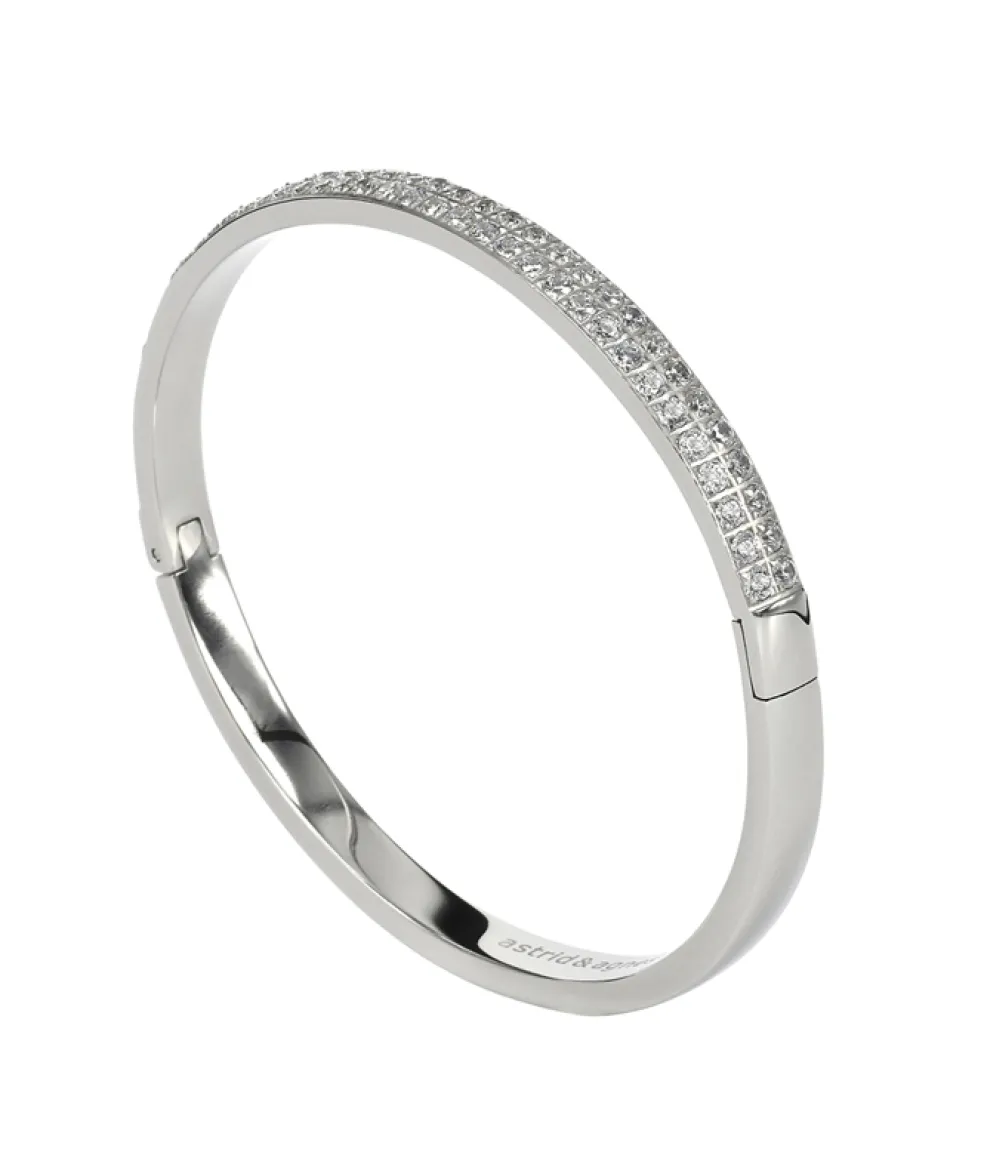 Öppningsbar armring med dubbla rader Cubic Zirkonier på från varumärket astrid&agnes. Halva armringen är klädd med kristaller och andra halvan är slät