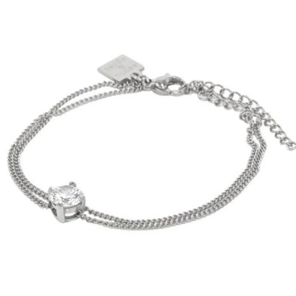 Armband med två nätta kedjor samt en klar kristall från astrid&agnes.