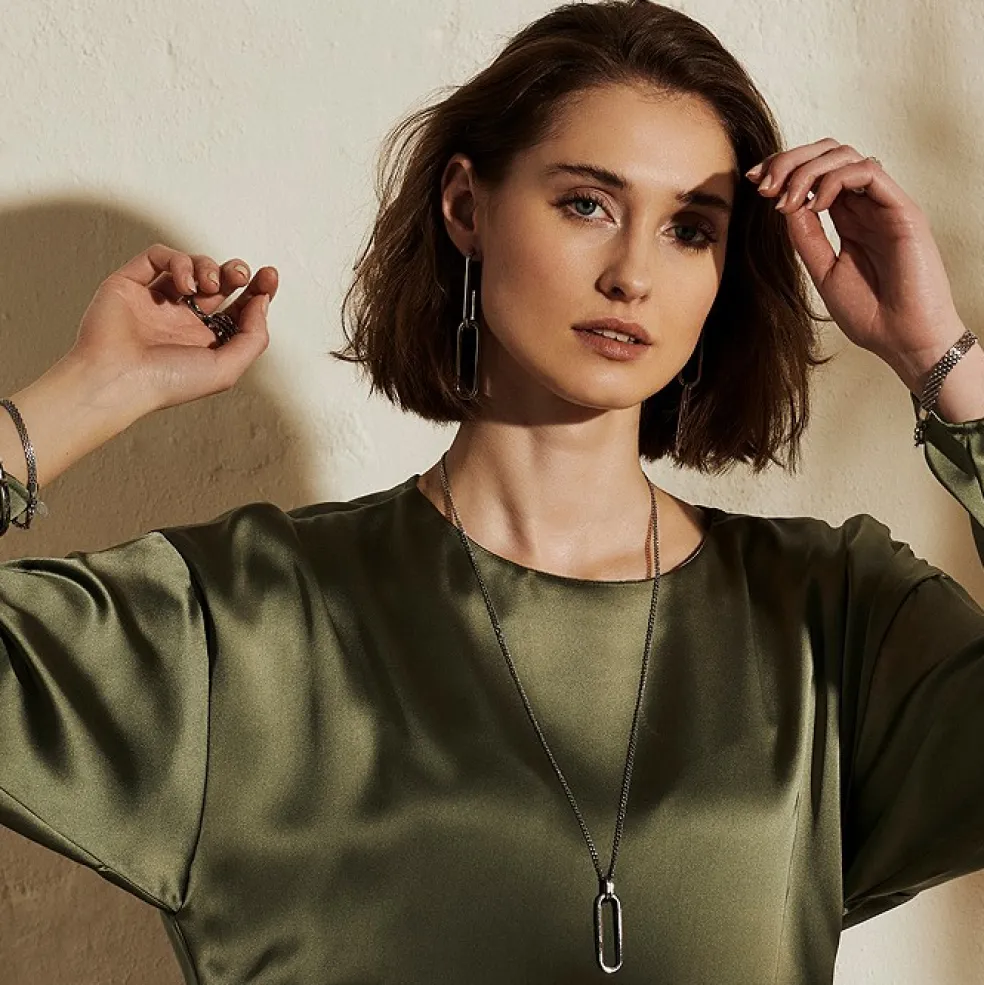 Stel armring i blankt stål med mjukt rundad yta, modellen kommer från Astrid & Agnes populära serie Klara.