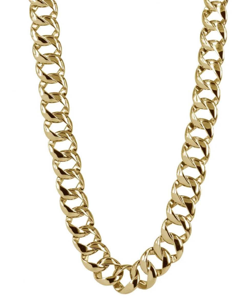 Klassiskt guldfärgat blankt stål halsband med runda kraftiga ringar. Modellen heter Astrid och kommer från varumärket Astrid&Agnes.