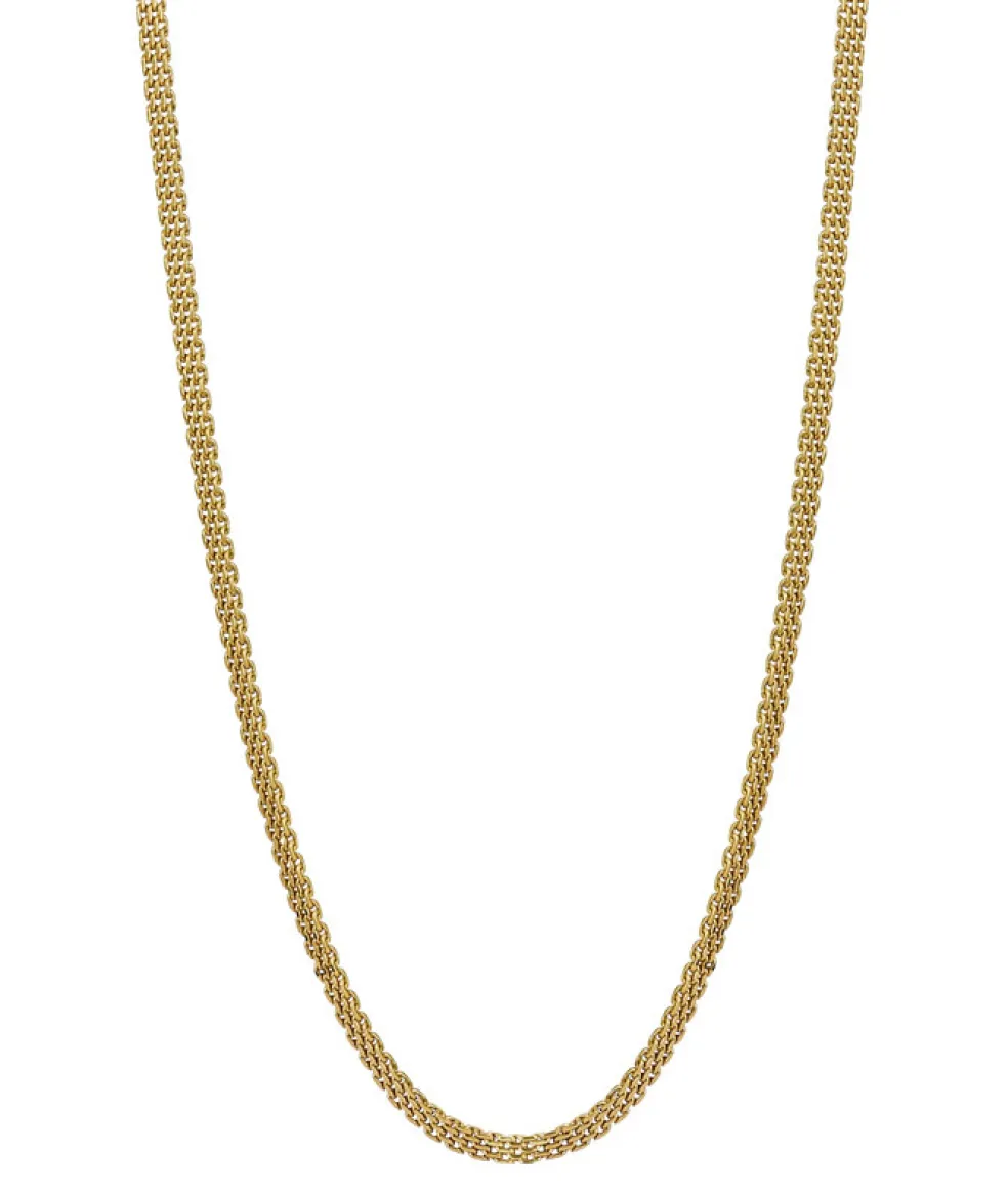 Stig in i världen av subtil lyx med varumärket Astrid & Agnes korta halsband som pryds av en elegant 0,4 cm bred meshlänk. Tillverkat av blankt 14k guldpläterat stål, är detta halsband ett mästerverk som fångar ljuset på ett förtrollande sätt, vilket ger en glänsande aura till din look.