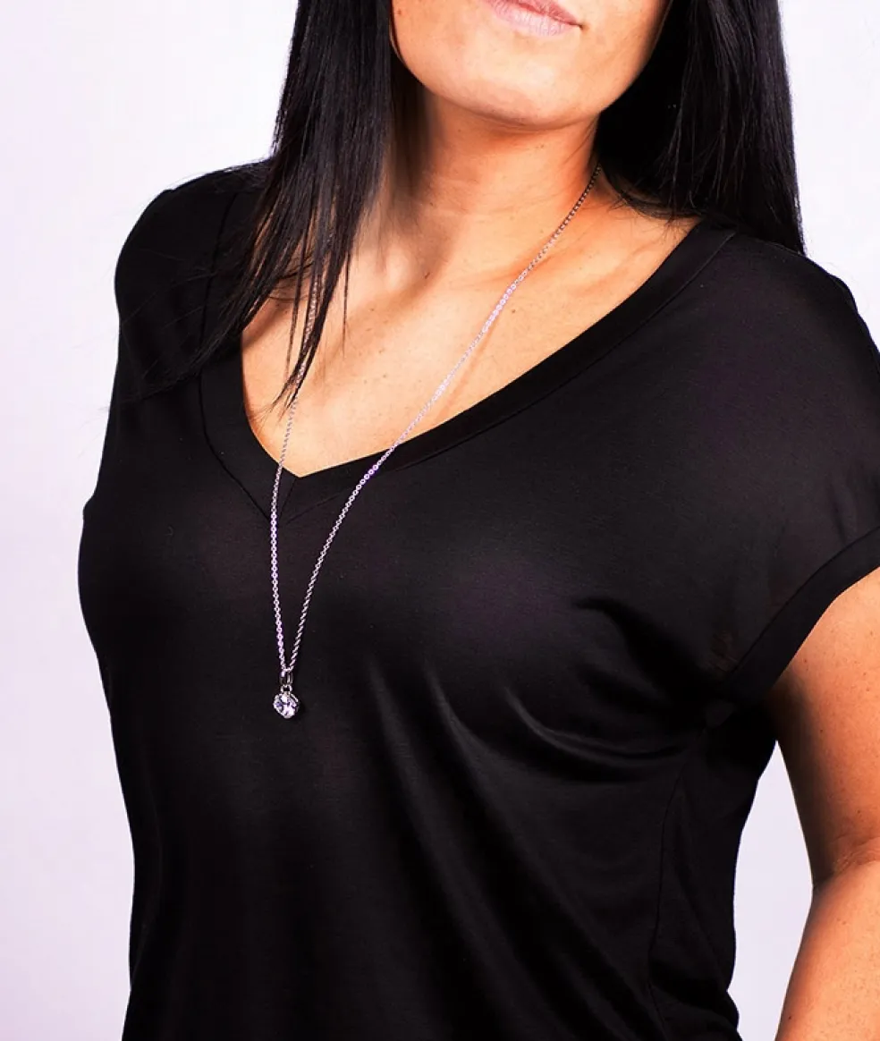 Ett långt halsband med nätt kedja samt en klar kristall på från varumärket Astrid & Agnes. Halsbandet är i rostfritt stål och stenen är en cubic zirkon.