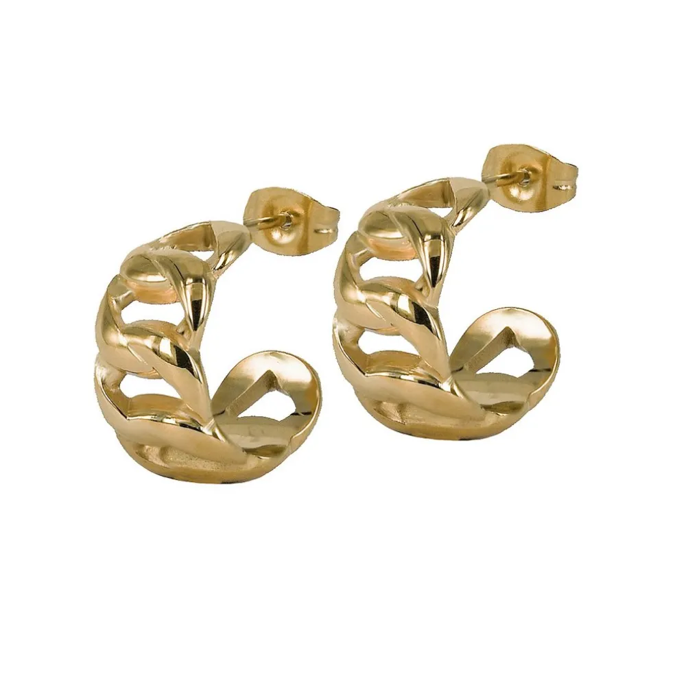 Creoler i kedjemönster på stift, tillverkade i 14 karats guldpläterat stål. Örhänget kommer från varumärket Astrid & Agnes.