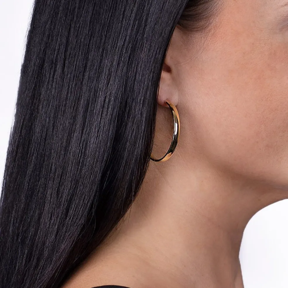 Ett par creol eller ringörhängen som det också kallas, modellen heter Klara och ses här i guldfärg.