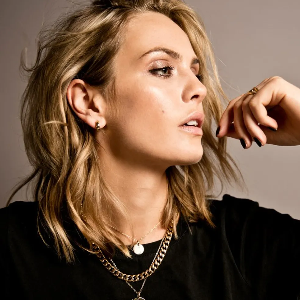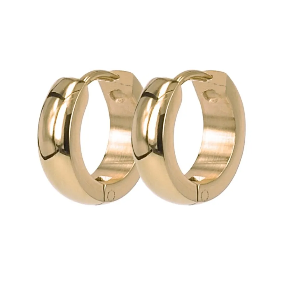 Små creolörhängen i guldpläterat stål från varumärket Astrid & Agnes, modellen heter Klara och ses här i storleken smal.