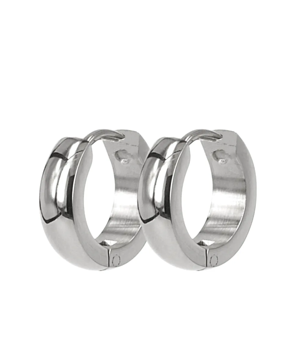Små creolörhängen i rostfritt stål från varumärket Astrid & Agnes, modellen heter Klara och ses här i storleken smal.