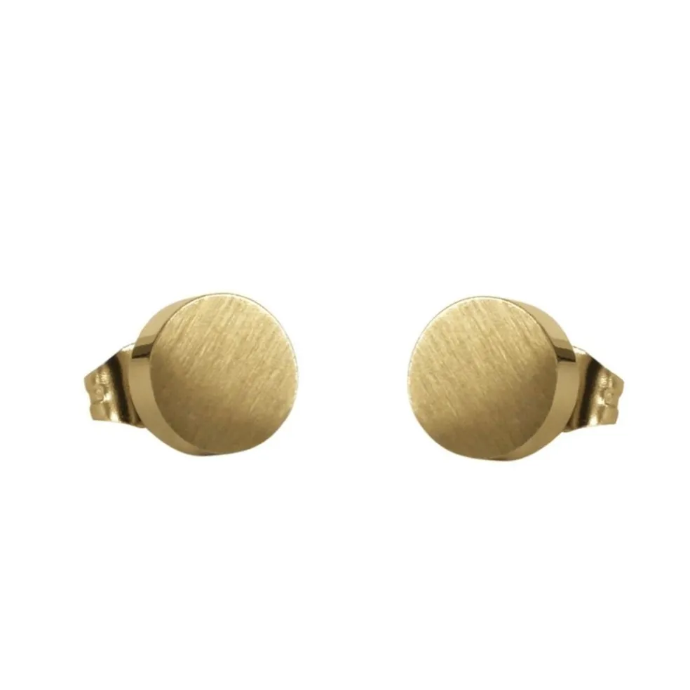 Små runda så kallade puckörhängen i guldpläterat stål från varumärket Astrid & Agnes, här ser Ni örhänget med matt yta.