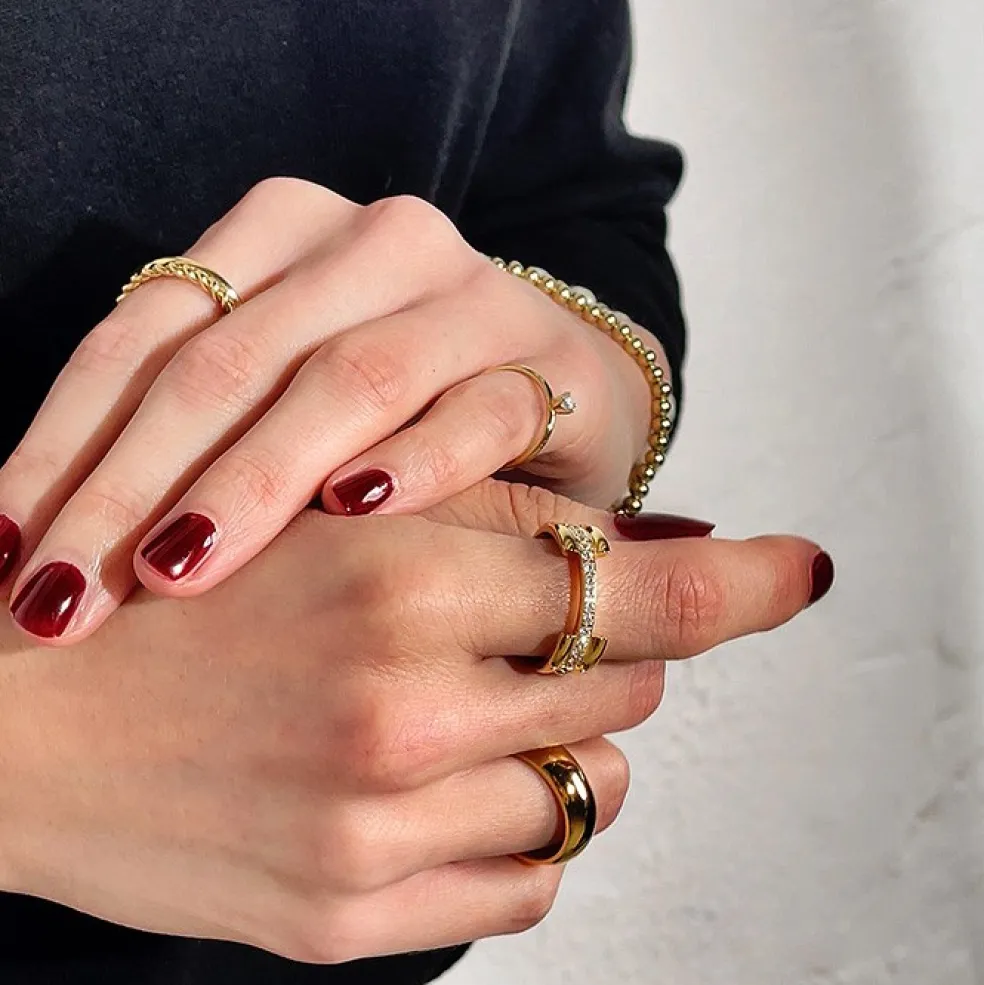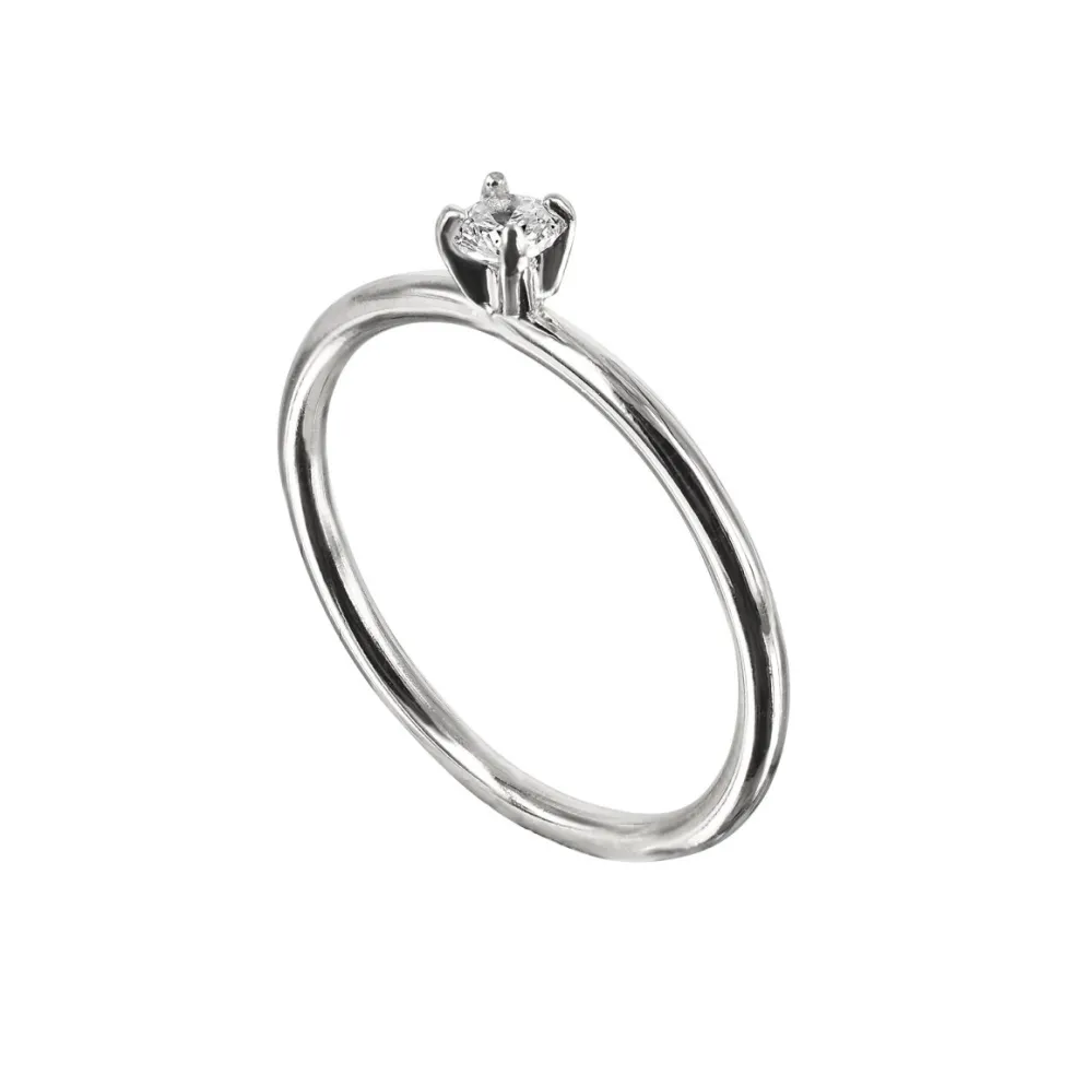 En tunn ring i stål med en 2mm kristall på, kristallen är fäst med fyra klor.