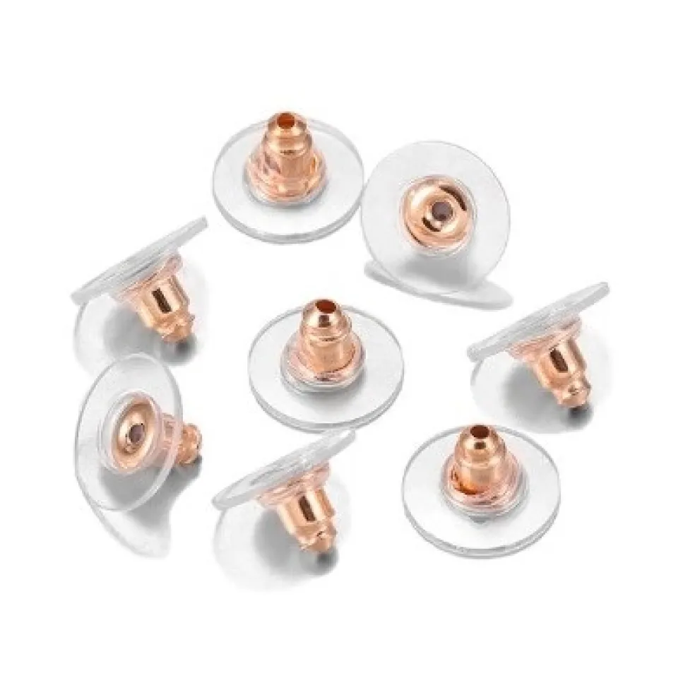 Stora bakpluppar som gör att örhänget sitter lite bättre och rakare på örat, här i rosépläterat stål med plastdisk, modellen kallas disk och även tefat.