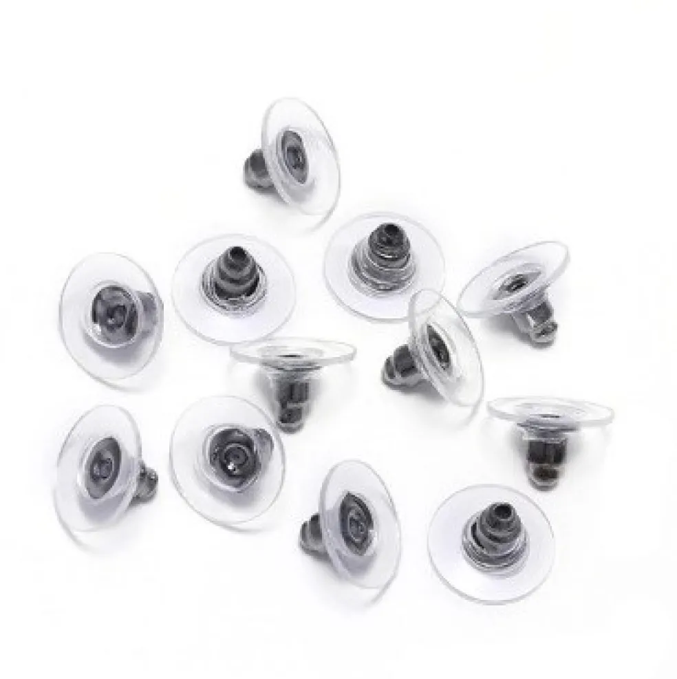 Stora bakpluppar som gör att örhänget sitter lite bättre och rakare på örat, här i svartpläterat stål med plastdisk, modellen kallas disk och även tefat.