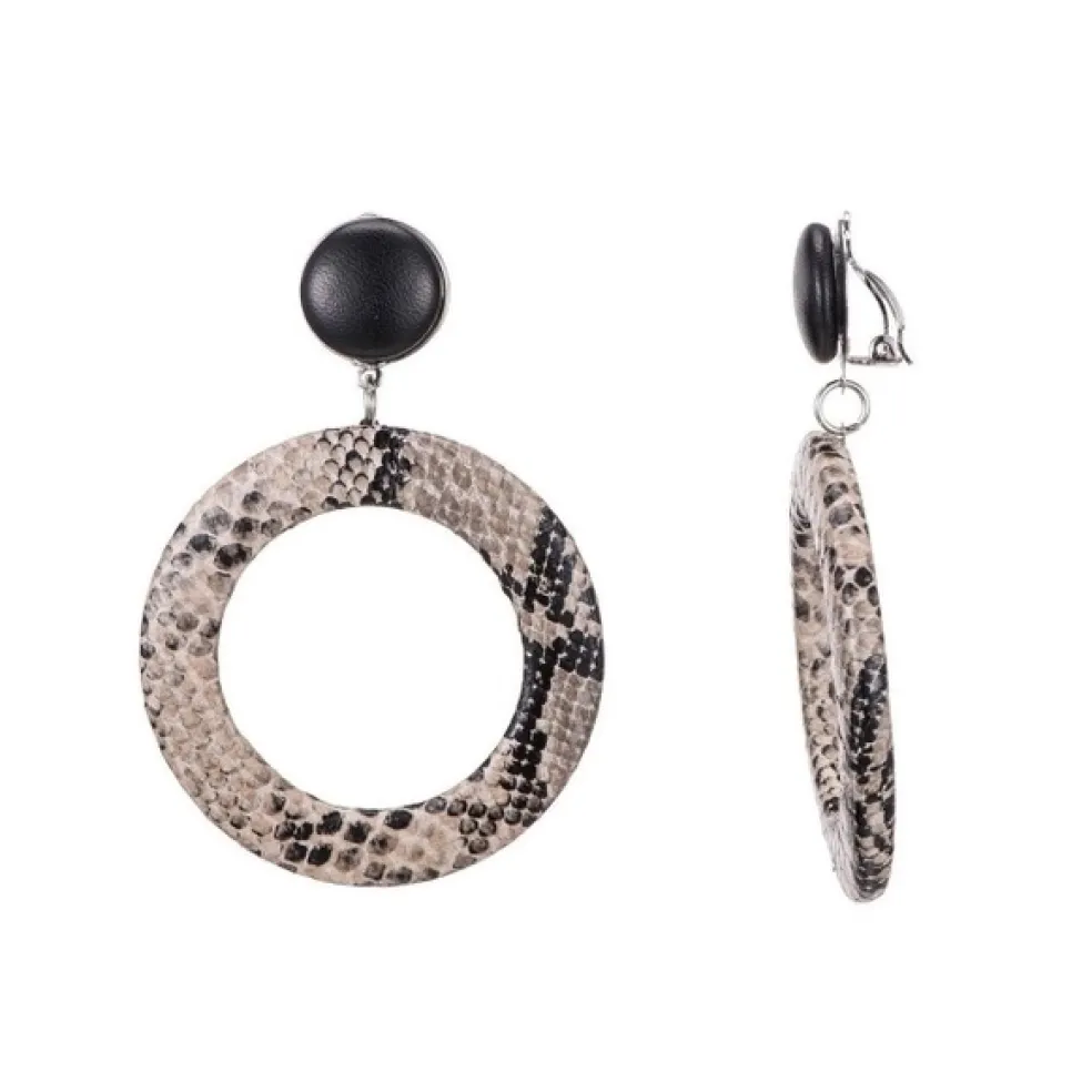 Detta är ett par av många som ingår i vårt sortiment på över 200 olika clipsmodeller. Dessa hippa clipsörhängen är tillverkade av imiterat ormskinn, vilket ger dem en vild och trendig look som verkligen sticker ut.