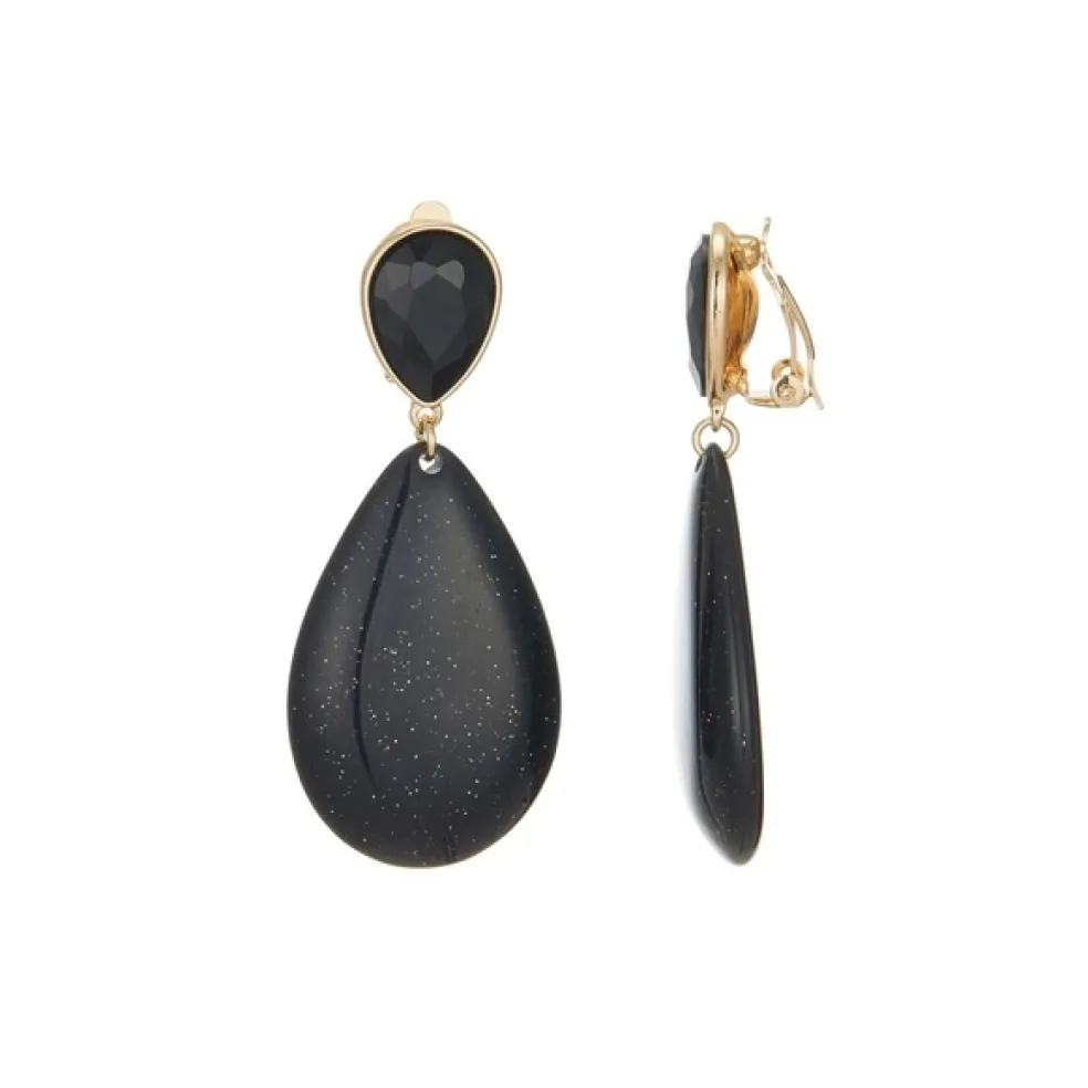 Svarta droppformade clipsörhängen i en elegant och stilren design.
