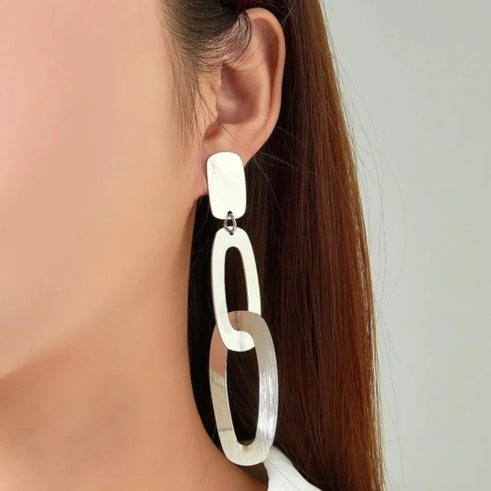 Ett par eleganta och dramatiska clipsörhängen i silverfärg som är skapade för att ge en iögonfallande look. Designade i tre dinglande delar, rör de sig mjukt och fångar ljuset vid varje rörelse.