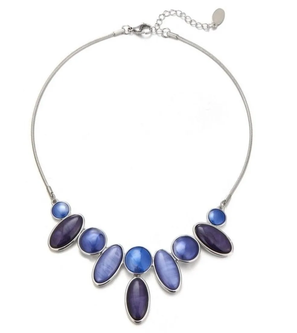 Perfekt att matcha till en stilren vit skjorta eller en somrig klänning för en fräsch och feminin stil, eller en mörk outfit där de blå nyanserna verkligen får poppa. Oavsett tillfälle ger Annette-halsbandet din outfit en färgstark och elegant twist.