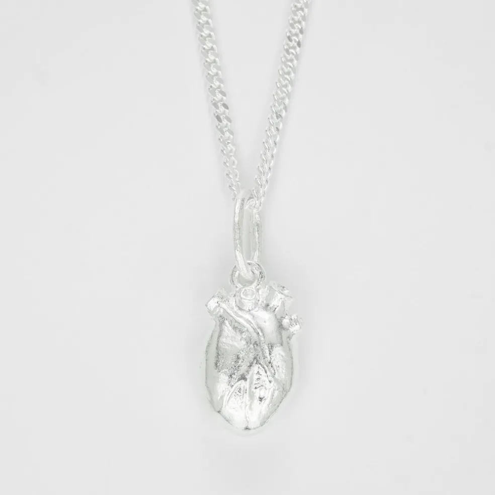 Handgjort halsband med Björgs ikoniska hjärta, allt i 925 sterlingsilver. Här ser Ni halsbandet med det största hjärtat, det finns även en mindre variant av hjärta.