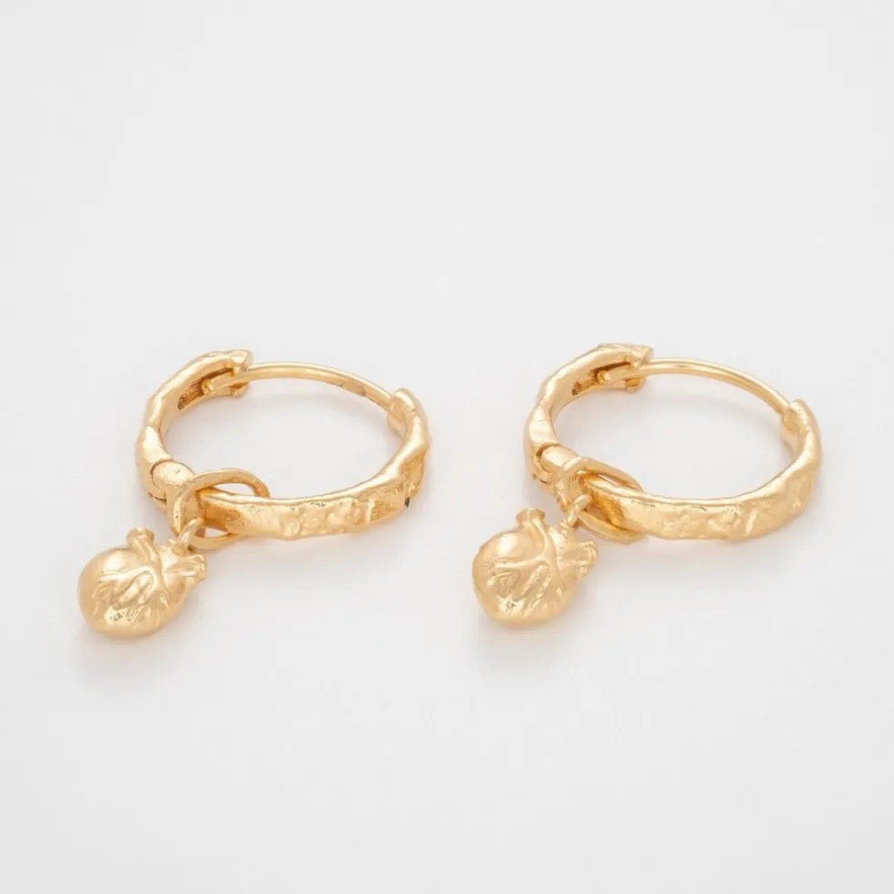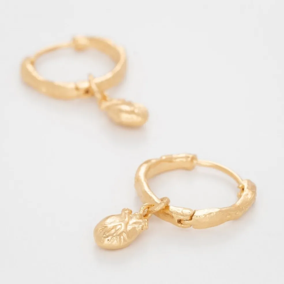 Handgjorda örhängen i 24 karats guldpläterat silver från Björg Jewellery ikoniska serie Iconic Heart. Det anatomiska hjärtat symboliserar sann och evig kärlek
