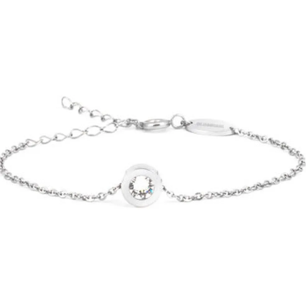 Armband utvecklat i samråd med hudläkare, med silverfärgad och hudvänlig ytbeläggning samt kristaller.