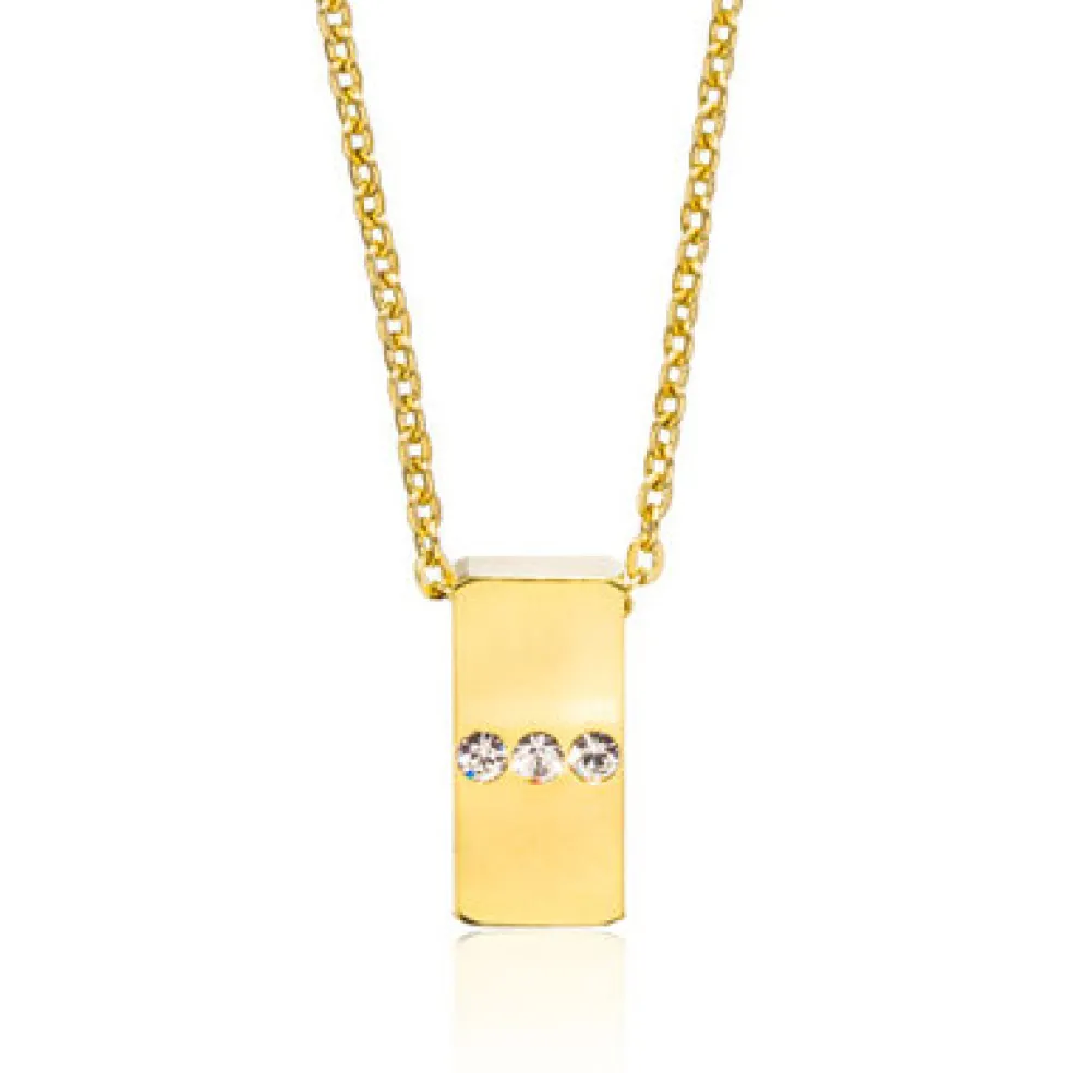 Halsband utvecklat i samråd med hudläkare, med guldfärgad och hudvänlig ytbeläggning samt klara kristaller.