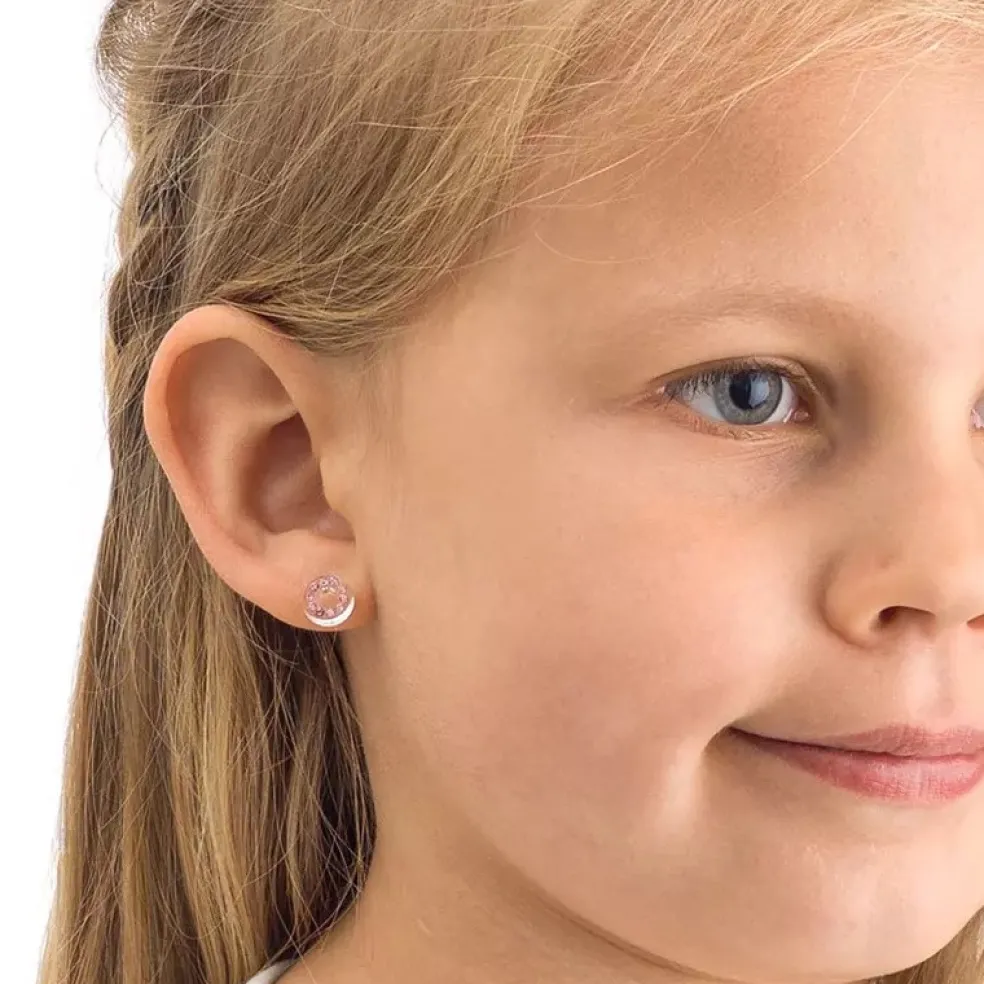 Rosa örhängen i plast från Blomdahl Medical.